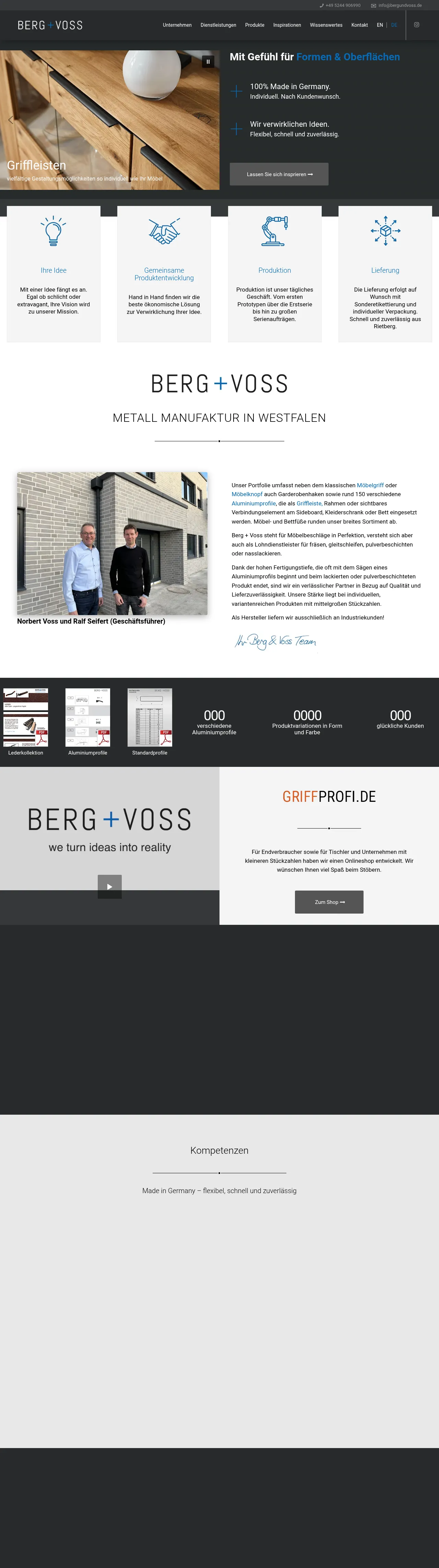 Berg + Voss is a German manufacturer specializing in high-quality furniture hardware and components, serving industrial clients with custom metal solutions. Their core capabilities include zinc die casting, CNC-controlled machining of aluminum profiles, and advanced surface finishing processes. The company manages the entire production cycle from initial product development and prototyping to large-scale series production. Known for precision craftsmanship, they offer various furniture handles, knobs, and feet, along with specialized contract manufacturing services. Berg + Voss emphasizes a collaborative development process to provide customized, cost-effective solutions for clients with specific aesthetic and technical requirements.
