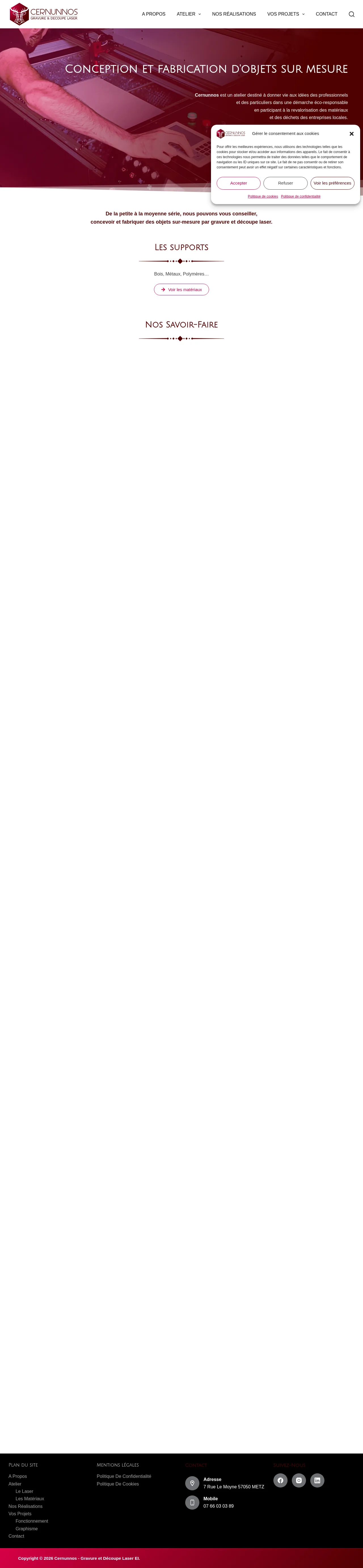 Cernunnos is an artisanal workshop specializing in custom laser engraving and cutting services. The company works with both private individuals and professional clients to bring design projects to life, ranging from small to medium production runs. Committed to a sustainable and ethical approach, they actively participate in the upcycling of materials and industrial waste from the local area. Their capabilities cover a wide range of applications including interior and exterior signage, custom trophies, bespoke packaging, and decorative elements. The workshop includes a showroom where clients can explore material possibilities and view completed projects.
