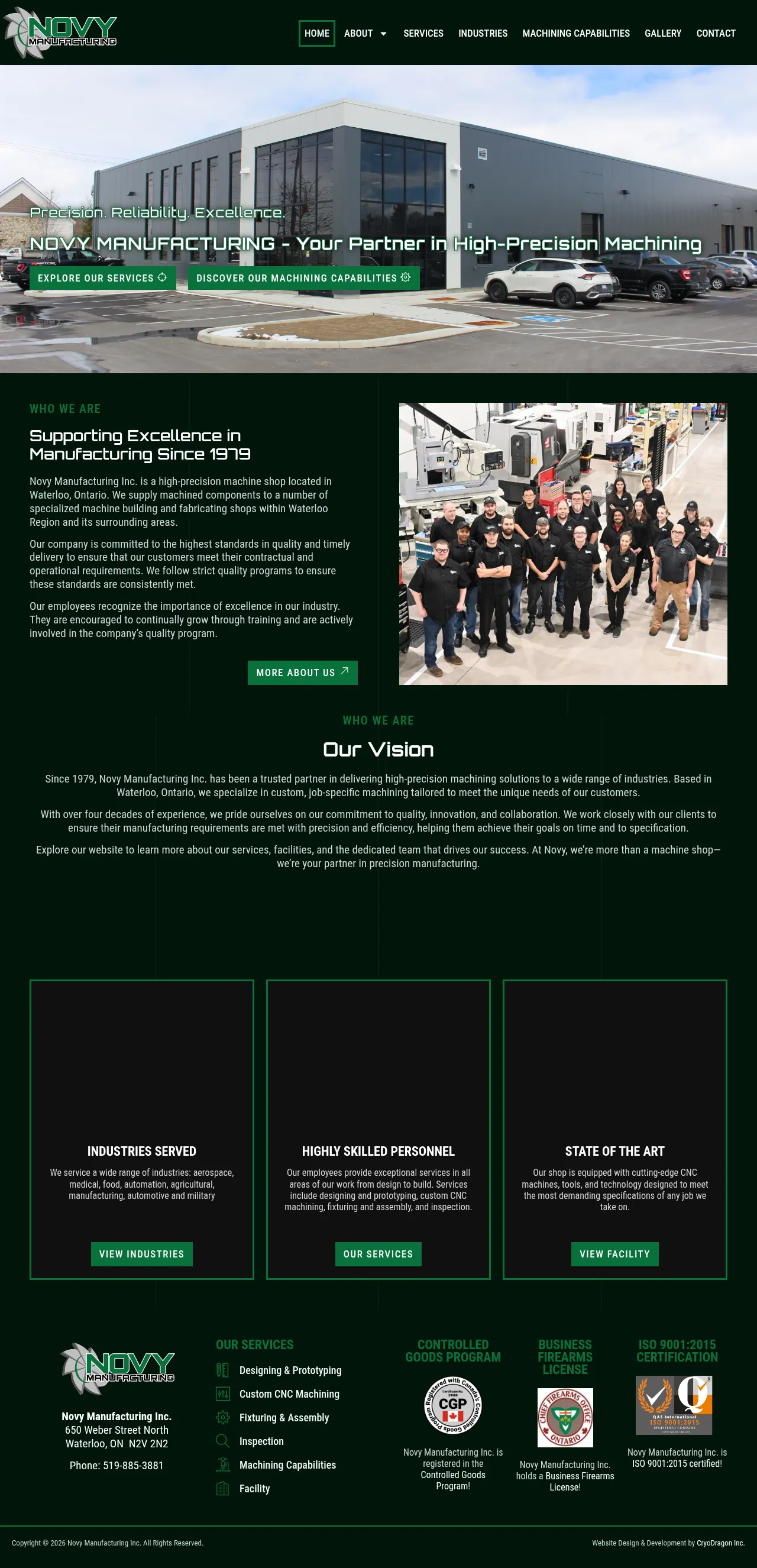 Established in 1979, Novy Manufacturing Inc. is a high-precision machine shop located in Waterloo, Ontario. The company provides custom machining, prototyping, and assembly services to sectors including aerospace, medical, automotive, and military. They utilize advanced CNC technology to support clients ranging from specialized machine builders to high-demand industrial fabricators. Novy Manufacturing focuses on delivering quality-assured components through strict adherence to documented standards and collaborative project management. With over four decades of experience, the firm emphasizes precision, operational efficiency, and timely project completion.