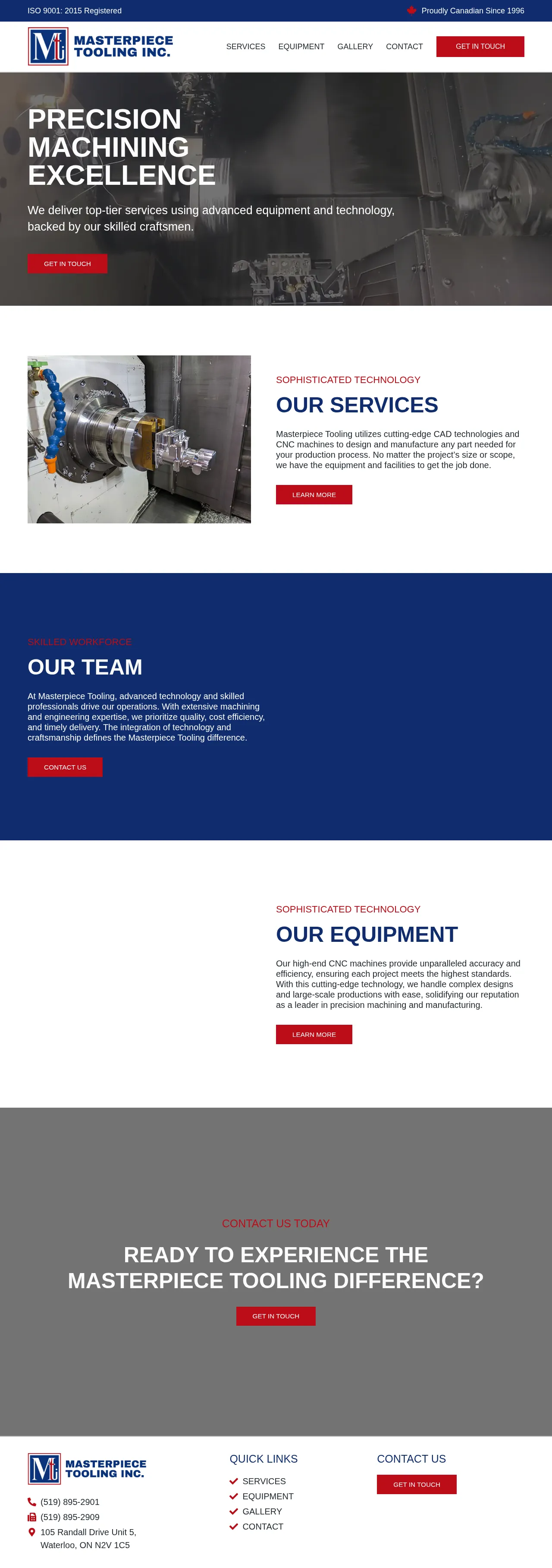Masterpiece Tooling is a Canadian manufacturing firm providing precision CNC machining and custom tooling solutions since 1996. The company leverages advanced CAD/CAM software and a diverse fleet of 5-axis CNC machines to support projects ranging from rapid prototyping to complex production components. Their operations emphasize high-accuracy manufacturing, rigorous quality control through CMM inspection, and efficient delivery timelines. By integrating skilled craftsmanship with automated technology, they serve clients requiring specialized custom parts and precision-engineered assemblies. The company maintains strict quality standards and provides a comprehensive suite of services including component assembly and fixture fabrication.