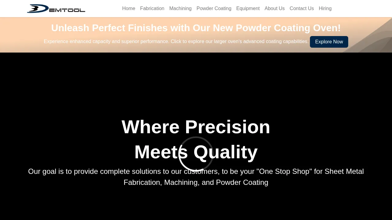 Demtool Inc. is a family-owned manufacturing facility providing comprehensive metalworking solutions including precision machining, sheet metal fabrication, and powder coating. Serving a diverse range of sectors such as robotics, automation, industrial machinery, medical, construction, and agriculture, the company functions as a single-source provider for complex industrial needs. Their operations are supported by a clean, modern facility and a commitment to high-quality performance. Demtool emphasizes environmental responsibility and consistent operational growth since its establishment in 2004.