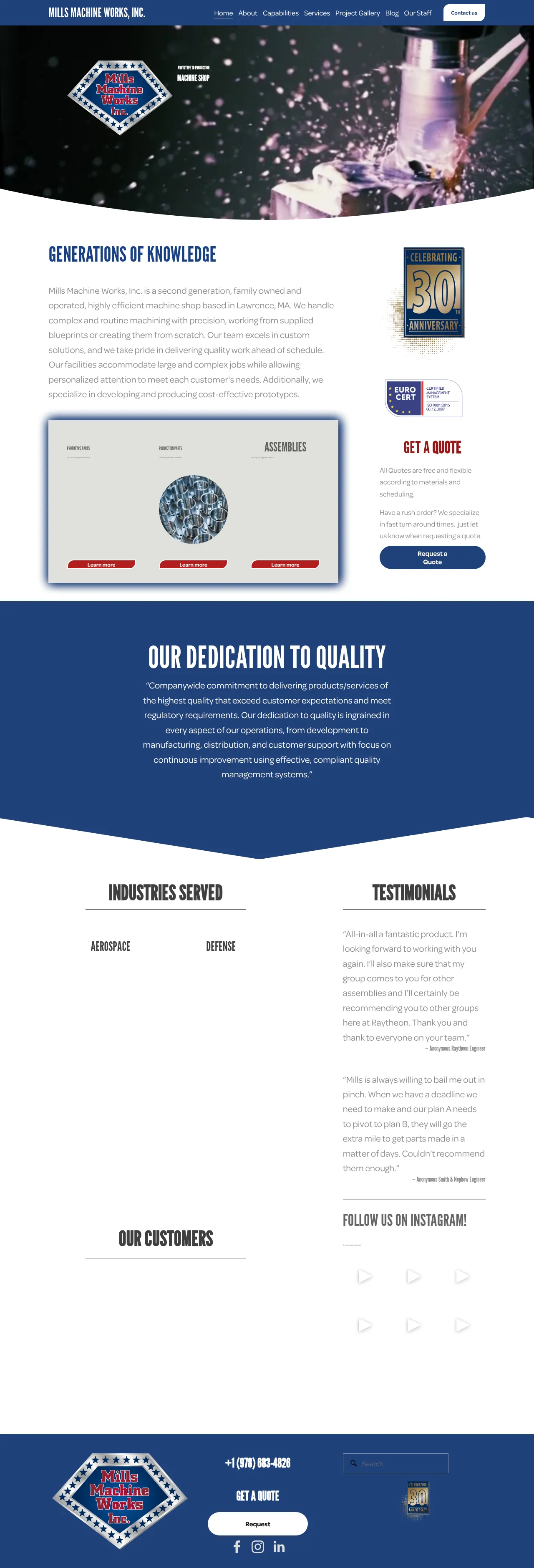 Mills Machine Works, Inc. is a family-owned and operated precision machine shop located in Lawrence, Massachusetts, specializing in both prototype development and production machining. The company serves a diverse range of industries including aerospace, defense, and medical device manufacturing. Their capabilities encompass CNC and manual machining, grinding, assembly, and various in-house and outsourced post-processing treatments. Committed to quality and precision, the shop manages complex projects from blueprints or conceptual ideas, emphasizing rapid turnaround times and flexible scheduling for custom solutions.