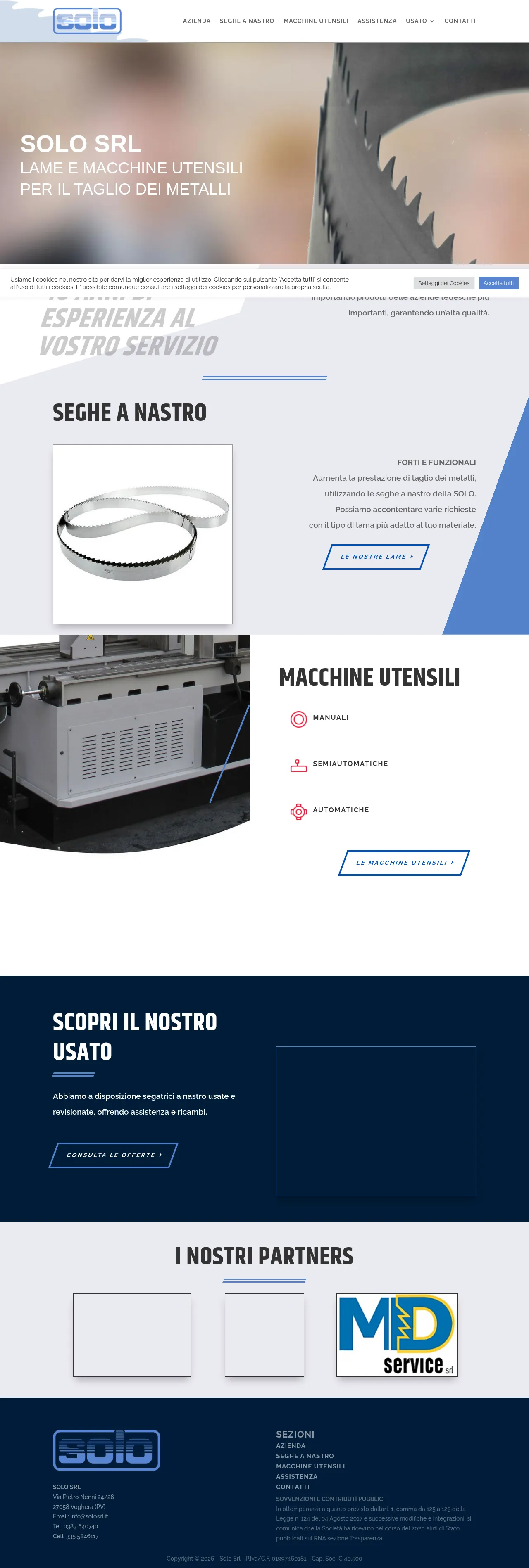 Solo Srl is a specialist in industrial metal cutting solutions with over 40 years of experience in the sector. The company distributes premium German-manufactured band saws and a comprehensive range of metal-cutting blades, available in various configurations for solid materials, tubes, and profiles. In addition to hardware supply, they offer expert maintenance and repair services for industrial sawing machines, including support for major brands such as FMB, MEP, IMET, and ANBAS. Their facility in Voghera, Italy, serves as the central hub for their operations, which include a large inventory of spare parts and both new and reconditioned machinery. Solo Srl provides technical consultation to assist clients in selecting the appropriate blade and operating parameters to optimize cutting performance and longevity.