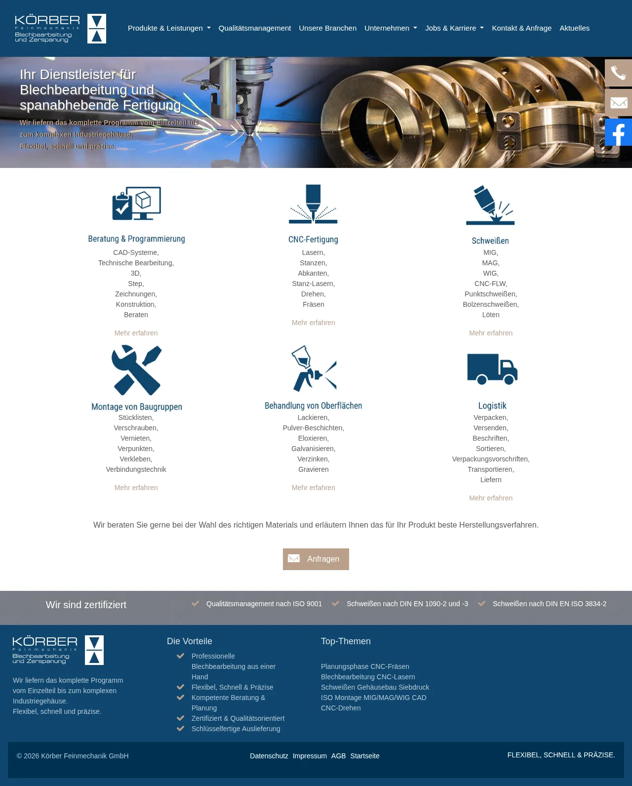 Körber Feinmechanik GmbH is a comprehensive service provider specializing in precision sheet metal processing and machining. The company manages the entire production cycle, ranging from individual components to complex industrial housings and finished assemblies. Their technical capabilities include CNC milling, turning, laser cutting, and advanced welding techniques, supported by in-house CAD engineering and consulting services. They offer extensive surface finishing and full logistical support, ensuring turnkey project delivery for their clients. Committed to high quality standards, the company utilizes modern automated manufacturing processes to ensure precision and consistent product quality.
