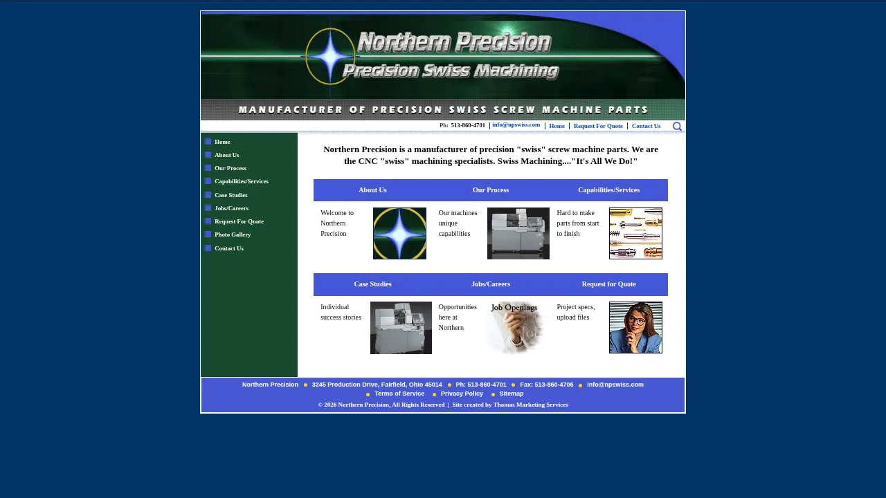 Northern Precision is a specialized manufacturer focusing exclusively on CNC Swiss screw machining. Founded in 1999, the company provides high-precision components for a diverse range of industries including medical, automotive, fiber-optic, and industrial sectors. Their process emphasizes single-setup production, allowing for the completion of complex parts without secondary operations. The facility maintains the capability to produce both high-volume runs and smaller precision batches with tight tolerance requirements. By utilizing advanced cooling and bar loading technologies, they effectively manage deep-hole drilling and minimize stock deflection.