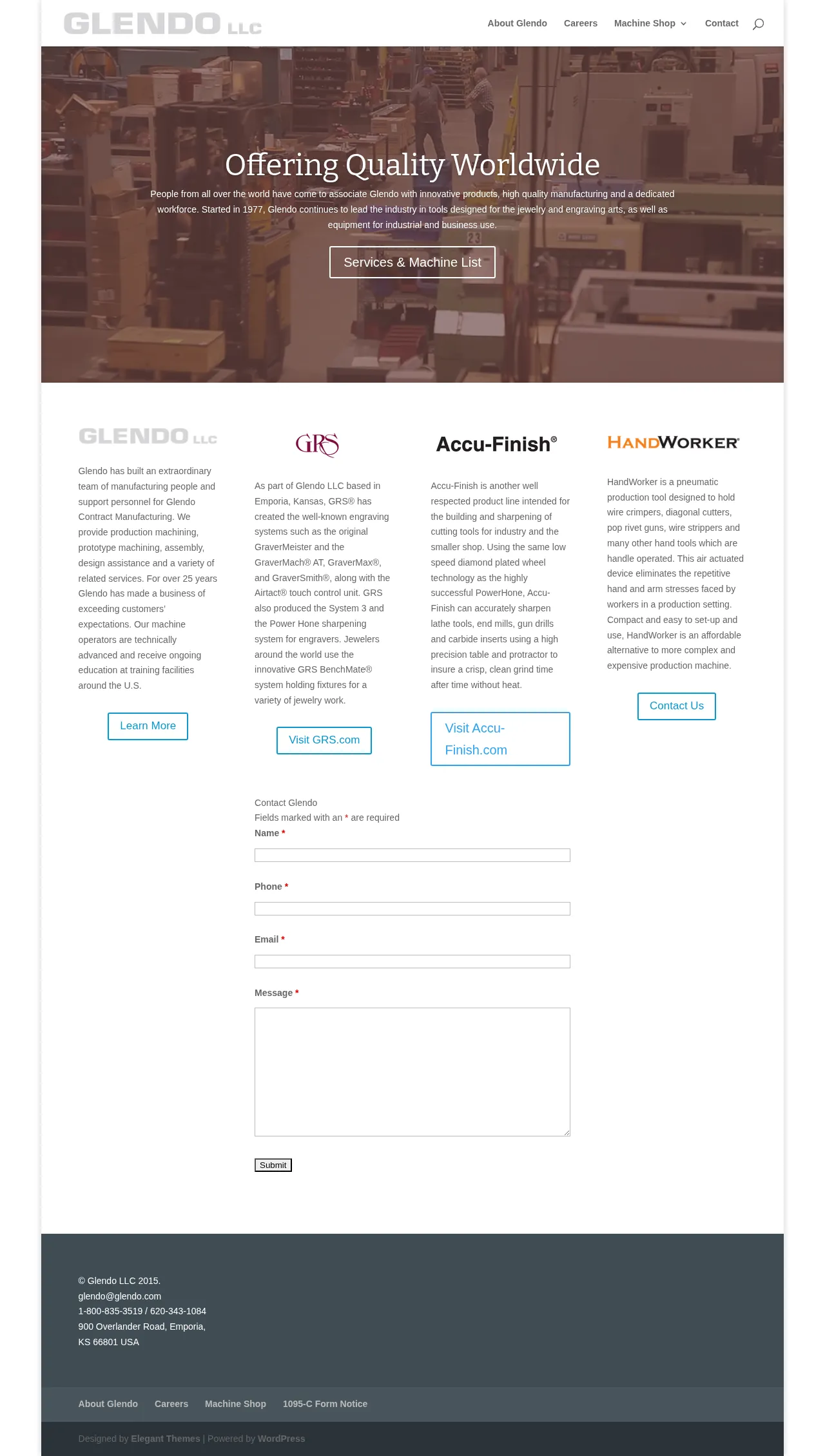 Glendo LLC is a Kansas-based manufacturing facility specializing in precision machining, prototyping, and assembly services. Founded in 1977, the company supports a diverse range of industries with advanced CNC milling and turning capabilities, including 5-axis operations. In addition to contract manufacturing, Glendo develops and produces high-quality engraving and jewelry tools under the GRS brand. The company emphasizes technical proficiency and utilizes Material Requirements Planning (MRP) systems to ensure reliable project delivery and cost-effective production.