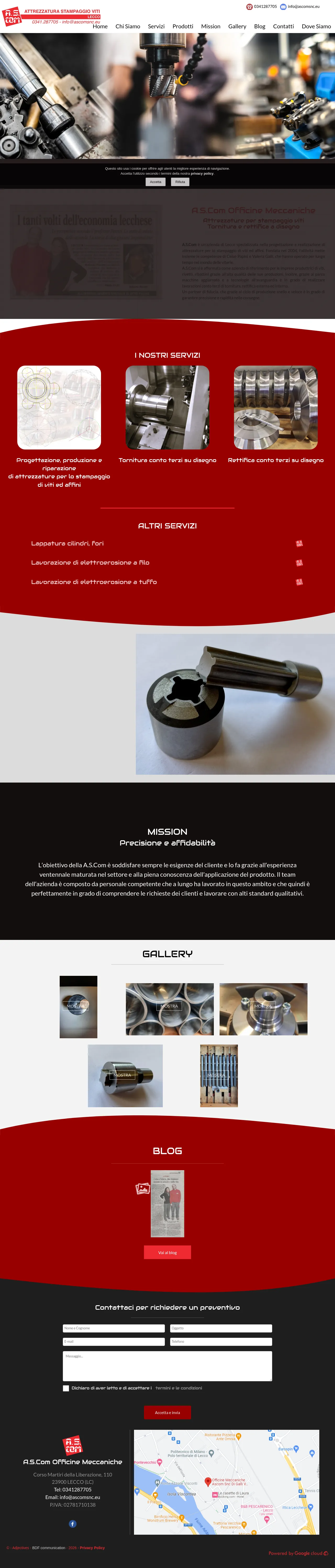 A.S.Com Officine Meccaniche is a Lecco-based manufacturer founded in 2004, specializing in the design and production of tooling for screw, rivet, and fastener manufacturing. The company offers precision machining services, including contract turning and internal or external grinding, as well as specialized lapping and EDM services. Serving the fastener industry, A.S.Com leverages its extensive technical expertise to produce custom components based on specific client designs. The business is recognized for its commitment to high production standards, manufacturing efficiency, and reliable delivery timelines. They maintain a modern machine park to support both standard tooling requirements and bespoke mechanical projects.