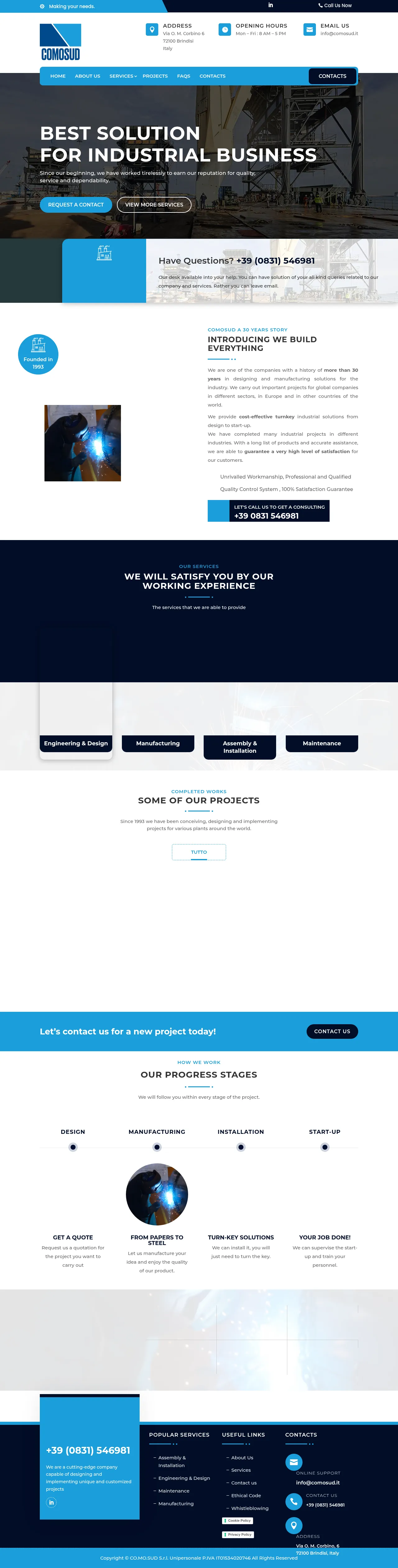 Established in 1993, Co.Mo.Sud S.r.l. specializes in the design, manufacturing, and installation of complex industrial solutions and structural steel projects. The company serves global clients across diverse sectors, offering capabilities that range from light, medium, and heavy structural carpentry to pressure vessels and complete electro-instrumental machinery. Their integrated project approach includes engineering design, on-site installation, and start-up support, often utilizing a dedicated industrial seaport facility for the assembly of large-scale equipment. They distinguish themselves through rigorous project monitoring via proprietary software, maintaining high quality assurance standards and providing comprehensive maintenance services for industrial plants.