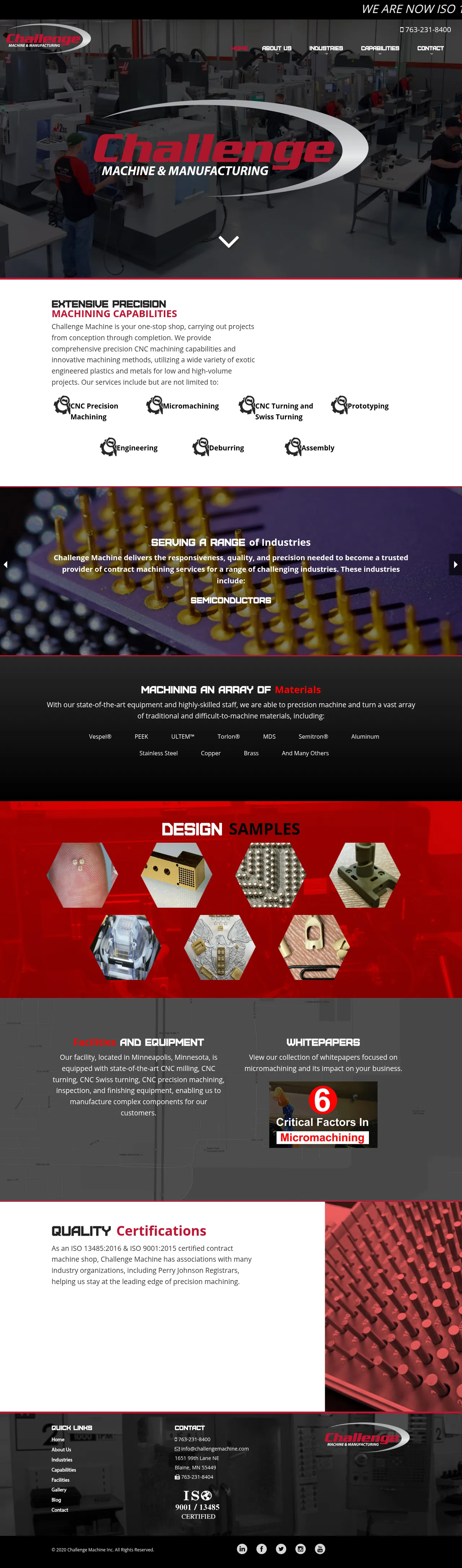 Challenge Machine is a contract machine shop specializing in CNC precision machining and micromachining since 1999. The company produces complex components from machinable metals and high-performance plastics for customers in industries such as semiconductors, defense, and telecommunications. Its Minneapolis, Minnesota facility supports prototyping, low-volume production, inspection, finishing, and assembly.