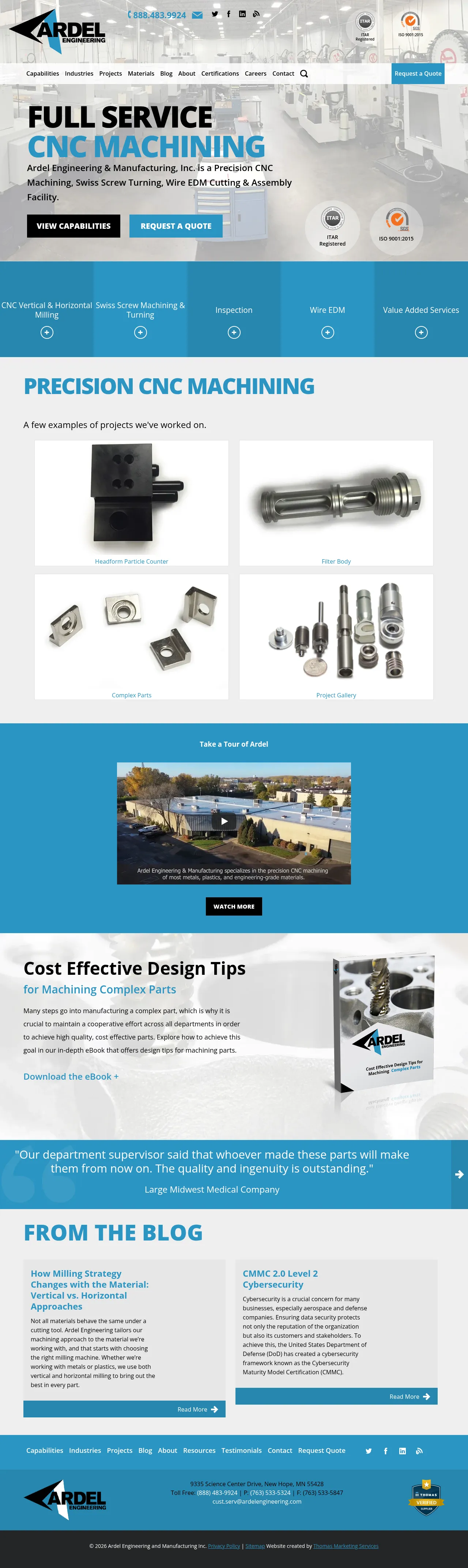 Ardel Engineering is a full-service precision machining company specializing in medical components. The firm provides CNC machining and inspection services for regulated industries. It maintains quality systems to support medical device manufacturing from prototype through production.