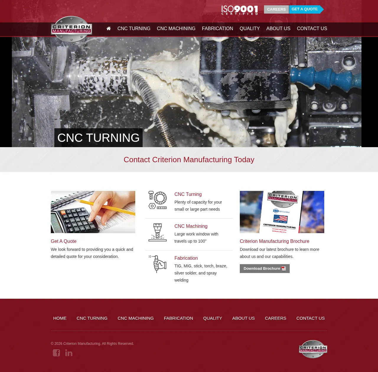 Criterion Manufacturing is an industrial machining and fabrication company established in 1972. Based in Waterloo, Iowa, the company offers a comprehensive range of services including CNC turning, CNC machining, and metal fabrication for a variety of industries. Their 50,000-square-foot facility supports projects ranging from small-scale prototyping to high-volume production. The company emphasizes rigorous quality control through advanced inspection technology and maintains a focus on continuous process improvement. They provide custom manufacturing solutions based on specific client designs and technical requirements.