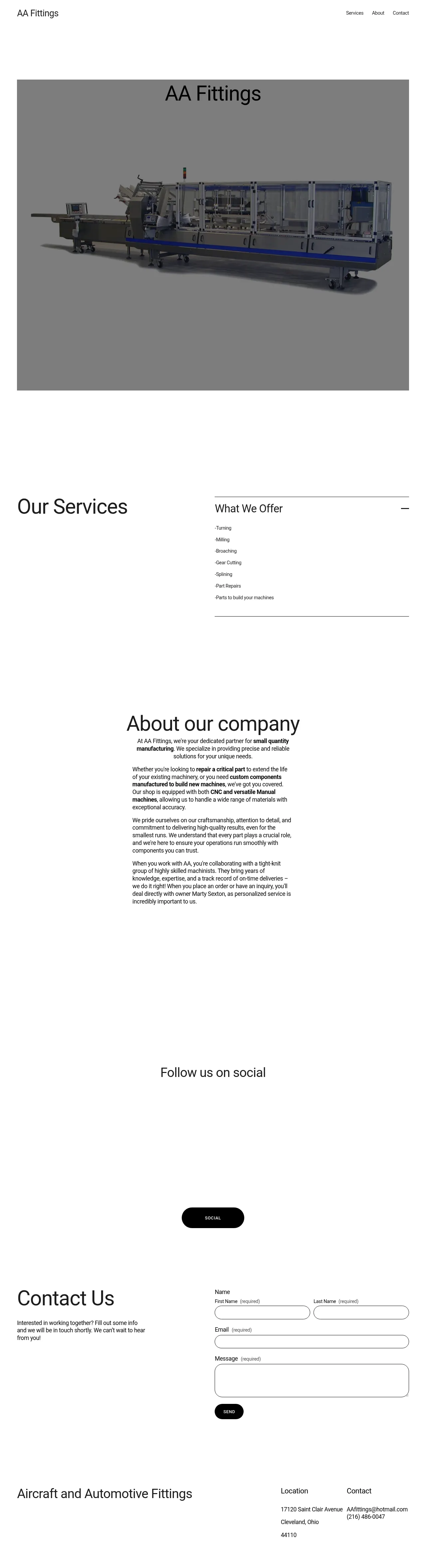AA Fittings is a precision manufacturing company based in Cleveland, Ohio, specializing in custom components for the aircraft and automotive sectors. The facility provides high-accuracy machining services, supporting both small-batch manufacturing and the repair of critical machinery components. With a team of skilled machinists utilizing both CNC and manual technology, the firm focuses on delivering precise parts for new equipment builds and ongoing maintenance. The company emphasizes personalized service and craftsmanship to ensure client operational requirements are met with consistency and reliability.