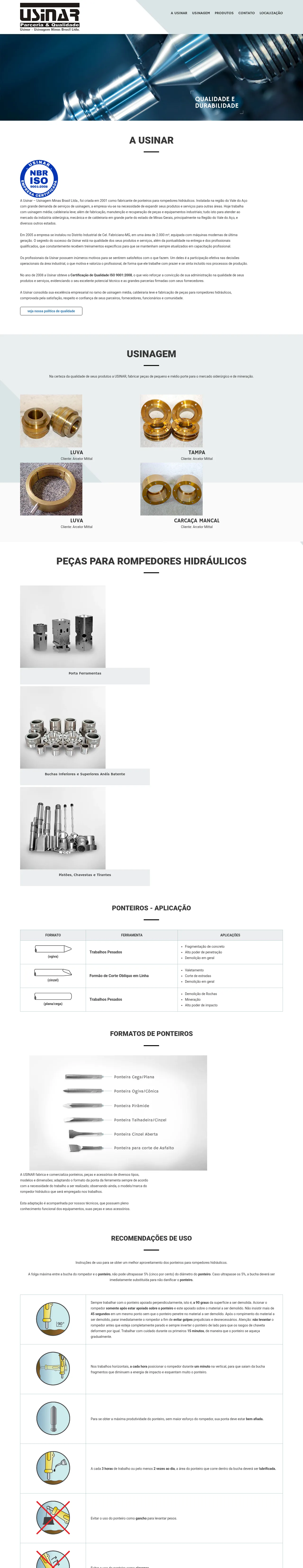 Usinar Usinagem Minas Brasil Ltda. is a specialized manufacturer established in 2001, primarily serving the steel, mining, and mechanical industries. Based in the Vale do Aço region, the company provides medium machining, light boiler making, and the production of industrial components. They are recognized for their manufacturing, maintenance, and recovery services, with a specific expertise in components for hydraulic breakers. Utilizing modern equipment in their 2,000 square meter facility, the company prioritizes technical precision, product quality, and reliable delivery schedules.