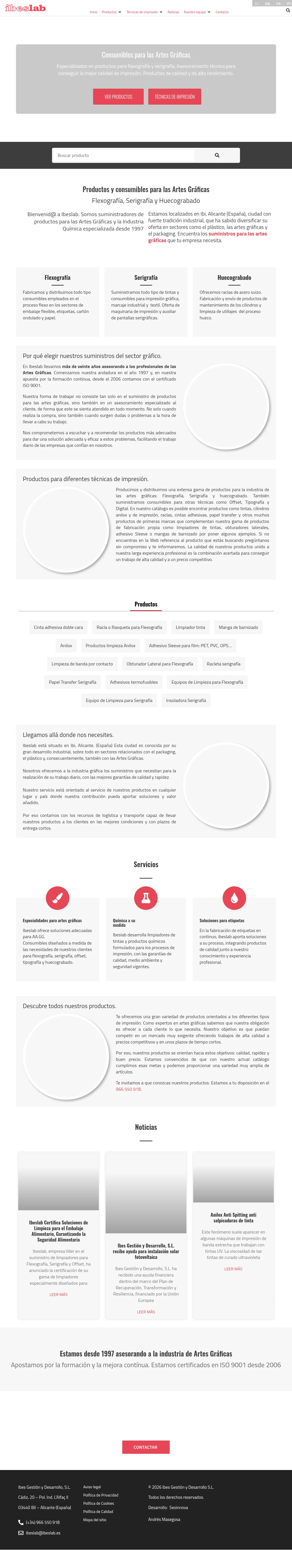 Ibes Gestión y Desarrollo, S.L., also known as Ibeslab, is a specialized supplier for the graphic arts and chemical industries established in 1997. Based in Ibi, Spain, the company manufactures and distributes high-performance supplies for flexography, serigraphy, offset, typography, and rotogravure printing processes. Their core offerings include chemical cleaners, printing cylinders, adhesives, and various consumables designed for industrial packaging and labeling. Beyond product distribution, the company provides technical consulting to assist clients in resolving printing challenges and optimizing production quality. They emphasize logistics capabilities to ensure timely international delivery for their industrial client base.