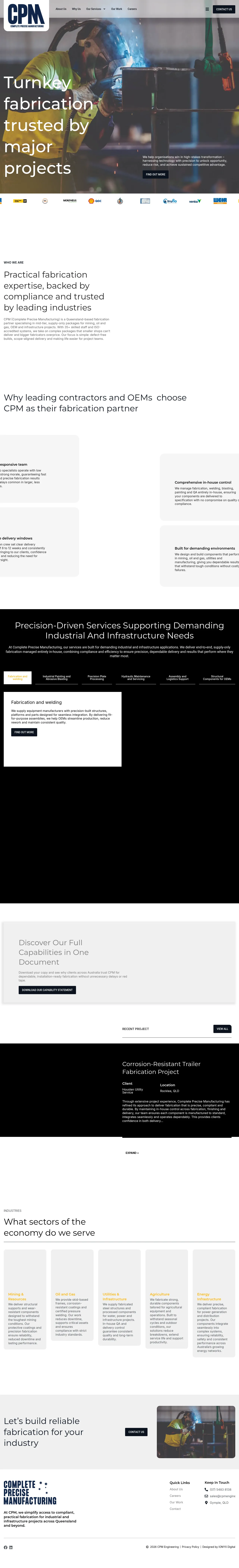 Complete Precise Manufacturing (CPM) is a Queensland-based fabrication firm specializing in mid-tier supply-only packages for the mining, oil and gas, infrastructure, and OEM sectors. The company provides a full suite of in-house services, including structural fabrication, abrasive blasting, industrial painting, and hydraulic maintenance. By managing the entire production process internally, the firm ensures rigorous quality control and adheres to project timelines ranging from 8 to 12 weeks. Their solutions are engineered for demanding industrial environments, focusing on durability, compliance, and seamless integration for complex projects. CPM operates with a dedicated team committed to providing reliable, defect-free manufactured components.