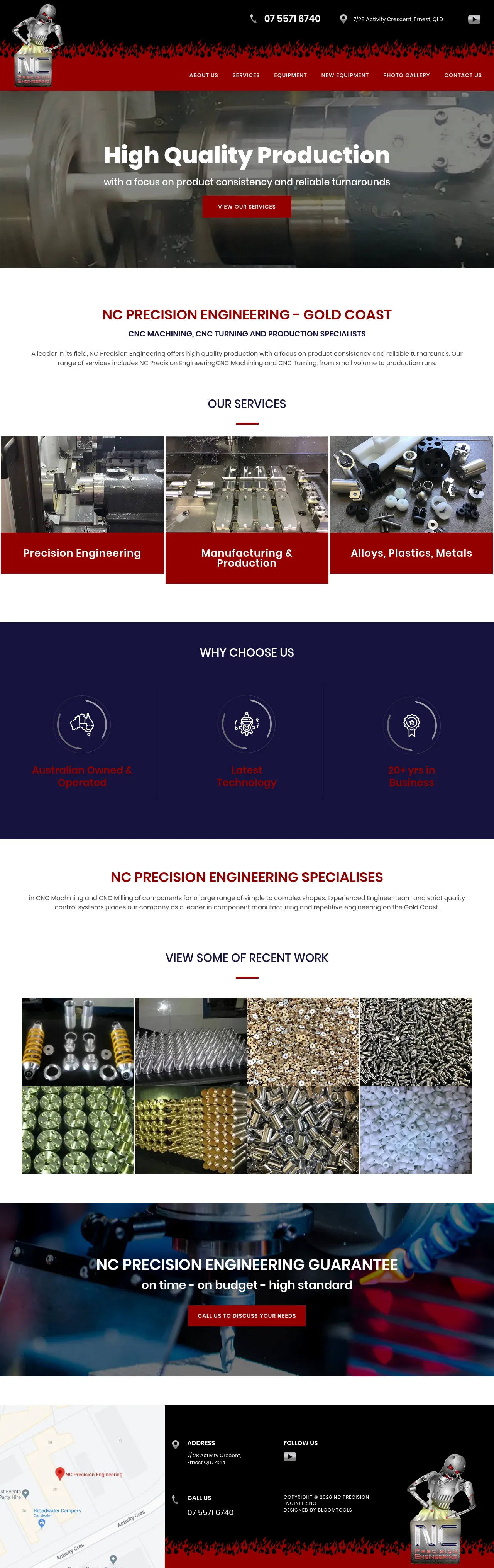 NC Precision Engineering is a precision engineering firm established in 1995 that provides CNC machining, CNC turning and tool manufacturing for production runs and prototypes. The company supplies parts and tooling to industries including marine, automotive, hydraulics, transport, agriculture, leisure, mining and building construction. It offers in-house CAD/CAM design and supports both R&D/prototype work and larger production runs. NC Precision Engineering emphasizes quick turnaround with projects delivered on time and on budget.