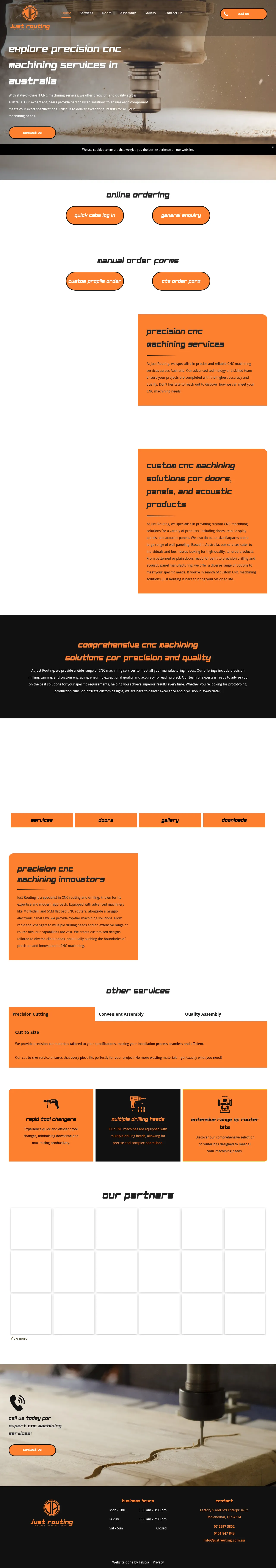 Just Routing provides custom CNC machining and routing services for doors, retail display panels, acoustic products and precision drilling. The company works with clients across Australia to manufacture bespoke components to specification. It operates from a facility in Molendinar, Queensland and accepts project-specific enquiries.