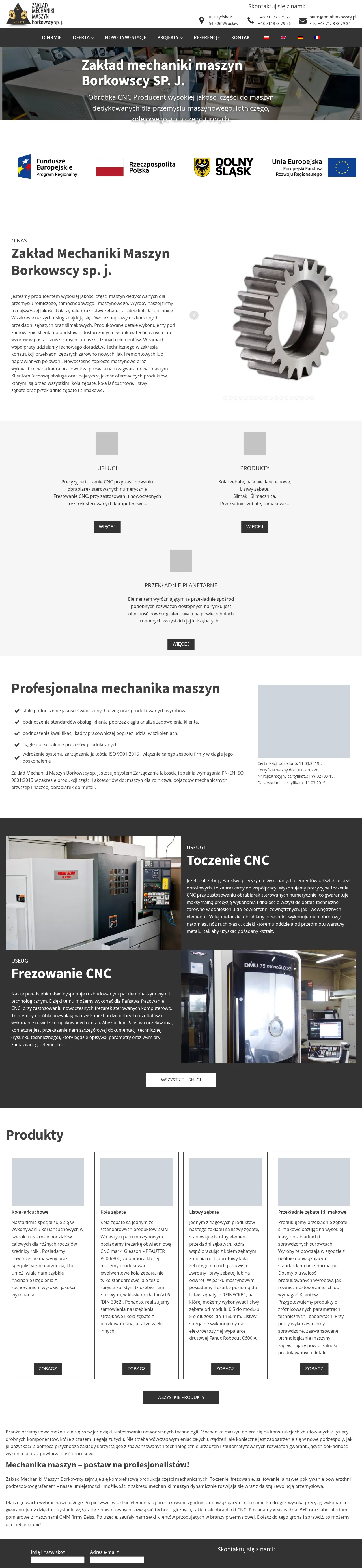 Zakład Mechaniki Maszyn Borkowscy is a family-owned industrial manufacturing company specializing in the production and repair of mechanical components. The company provides comprehensive machining services, including CNC turning, milling, and grinding, with a focus on gear technology such as spur, helical, bevel, and worm gears. Serving sectors including automotive, aerospace, railway, and agriculture, they utilize advanced diagnostic and production technologies, including graphene surface coating. The firm operates a dedicated research and development department supported by a coordinate measuring machine laboratory to ensure high-precision output. All production processes are maintained under a certified ISO 9001:2015 quality management system.