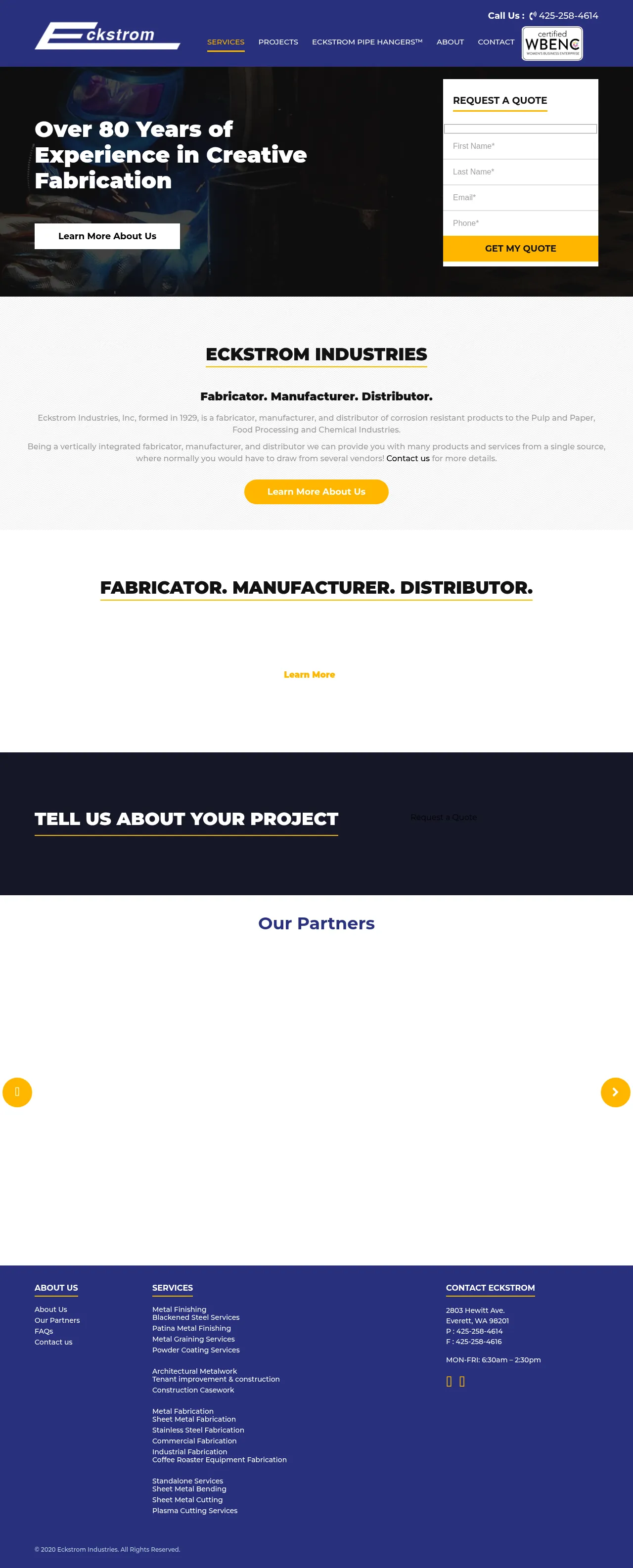 Eckstrom Industries Inc. is an industrial metal fabrication company providing expert sheet metal solutions for over 80 years. Serving clients in the construction, architectural, and equipment manufacturing sectors, the firm specializes in precision cutting, bending, welding, and finishing services. Their technical expertise encompasses a wide range of manual and automated methods, including waterjet cutting, TIG and MIG welding, and specialized surface treatments. Based in Everett, Washington, the company is recognized for its longstanding history and dedication to high-quality fabrication standards. They provide comprehensive manufacturing support for both complex industrial projects and custom architectural metalwork.