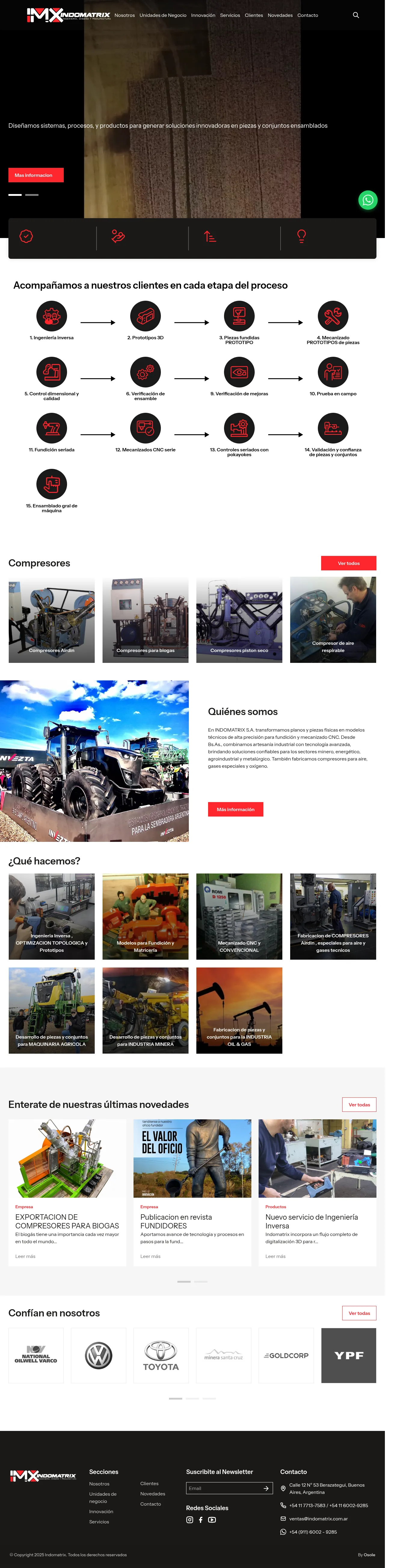 INDOMATRIX S.A. produces high-precision technical models from drawings and physical parts for casting and CNC machining. Based in Buenos Aires, the company combines manual industrial skills with advanced technology to supply parts and models for the mining, energy, agro-industrial and metallurgical sectors. It also designs and manufactures compressors for air, special gases and oxygen.