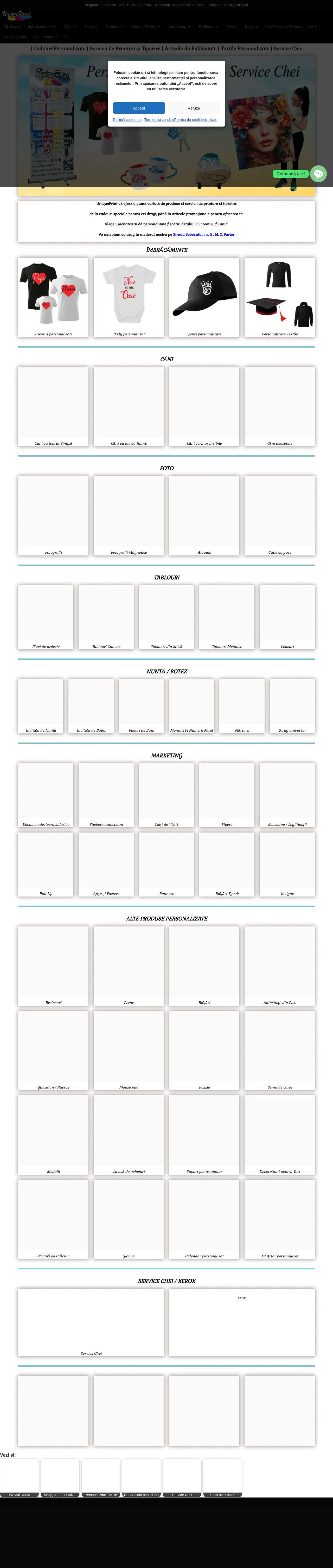 UniquePrint is a professional printing and customization service provider based in Brăila, Romania. The company specializes in a wide array of personalized products, ranging from corporate promotional items and marketing materials to custom gifts for personal occasions. Their service offering includes large-format printing for banners and roll-ups, textile customization, photo processing, and the creation of personalized home decor and stationery. They serve both business and individual clients, providing on-demand printing solutions with nationwide distribution.