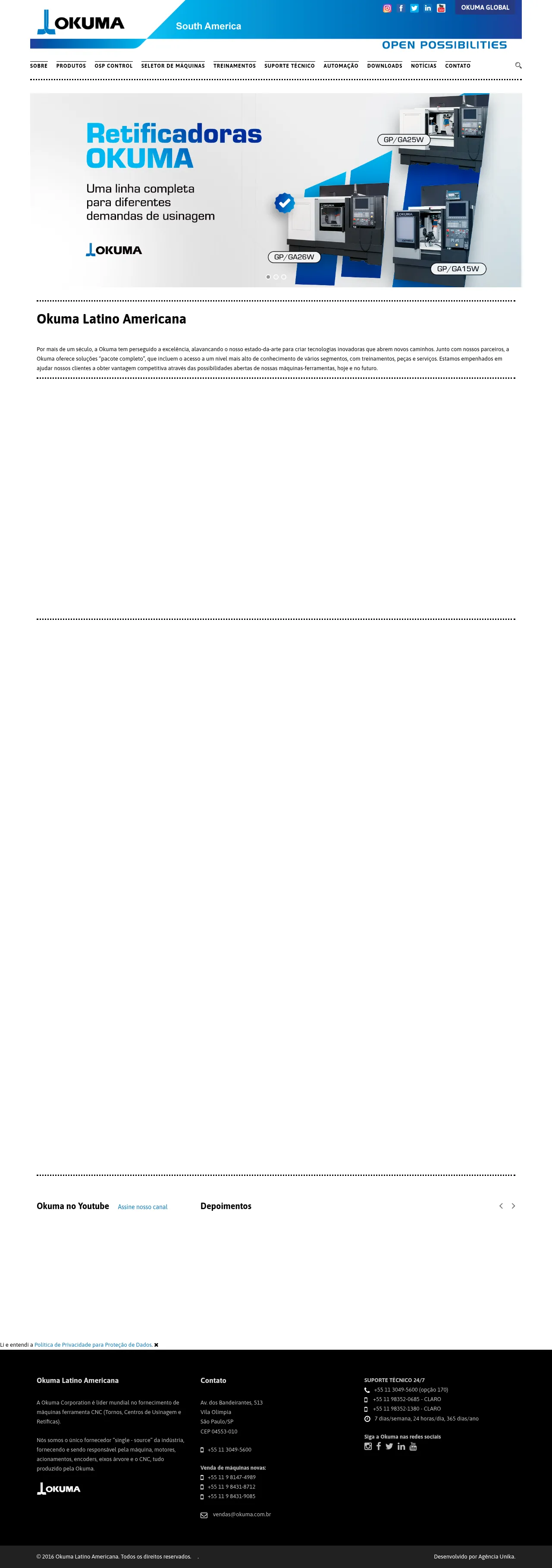 Av. dos Bandeirantes, 513 - Vila Olímpia, São Paulo - SP, 04553-010, Brazil, Americana, São Paulo, Federative Republic of Brazil(11) 3049-5600vendas@okuma.com.brhttp://www.okuma.com.br/