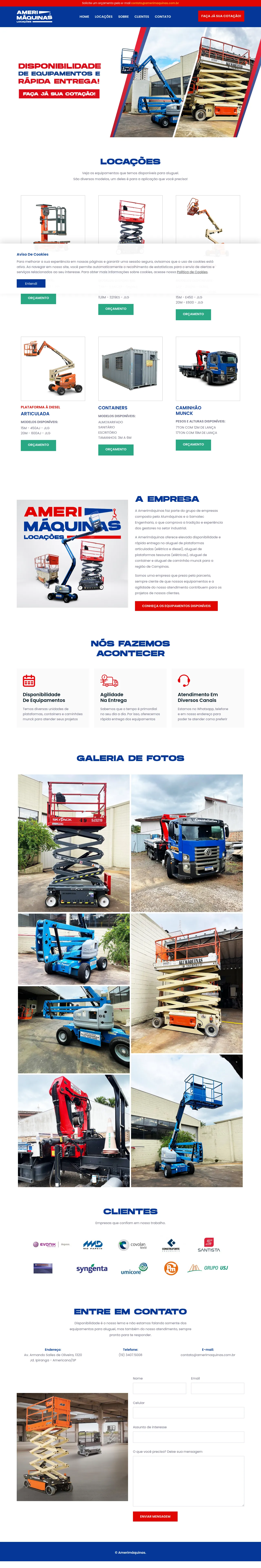 Amerimáquinas is a specialized industrial rental company serving the Campinas region. The firm provides a comprehensive fleet of equipment including articulating and scissor lift platforms, shipping containers, and boom trucks. As part of a larger industrial group that includes Alumáquinas and Samatec Engenharia, the company leverages extensive engineering experience to support diverse project requirements. Their service model emphasizes operational availability, equipment reliability, and rapid delivery to ensure client project timelines are met. They offer versatile solutions for storage, office, and heavy lifting needs across industrial applications.