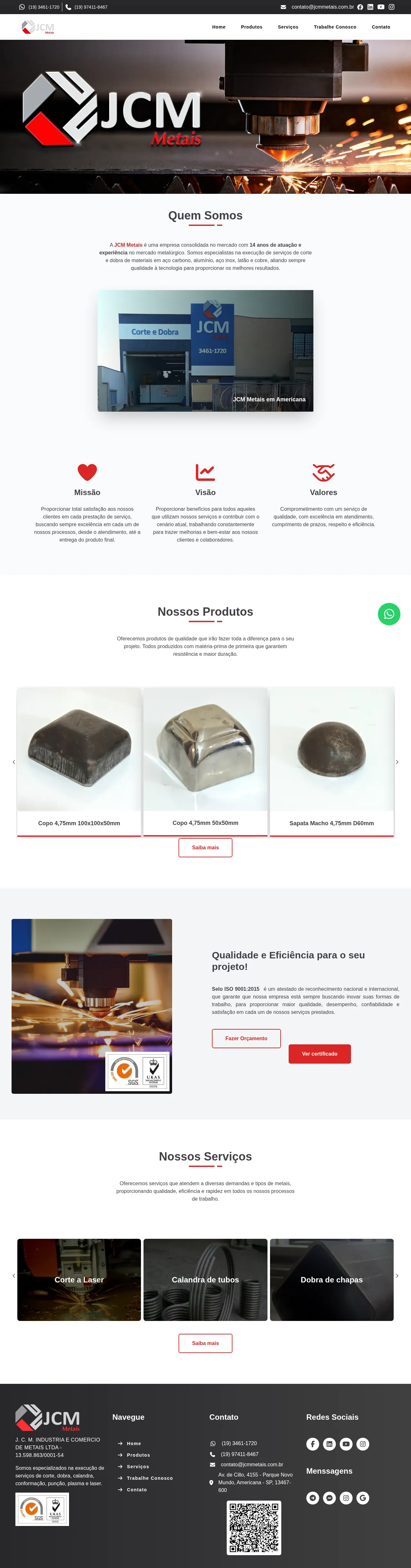 JCM Metais is a metalworking company based in Americana, Brazil, with over 14 years of experience in the industry. The company specializes in precision metal processing, including laser and plasma cutting, plate bending, tube rolling, and cold stamping. They serve a variety of sectors, offering fabrication services for carbon steel, stainless steel, aluminum, brass, and copper. By combining advanced manufacturing technologies with a commitment to quality and process efficiency, the company delivers custom metal components for diverse industrial applications. Their operations are supported by ISO 9001:2015 certification, ensuring reliability and adherence to international production standards.