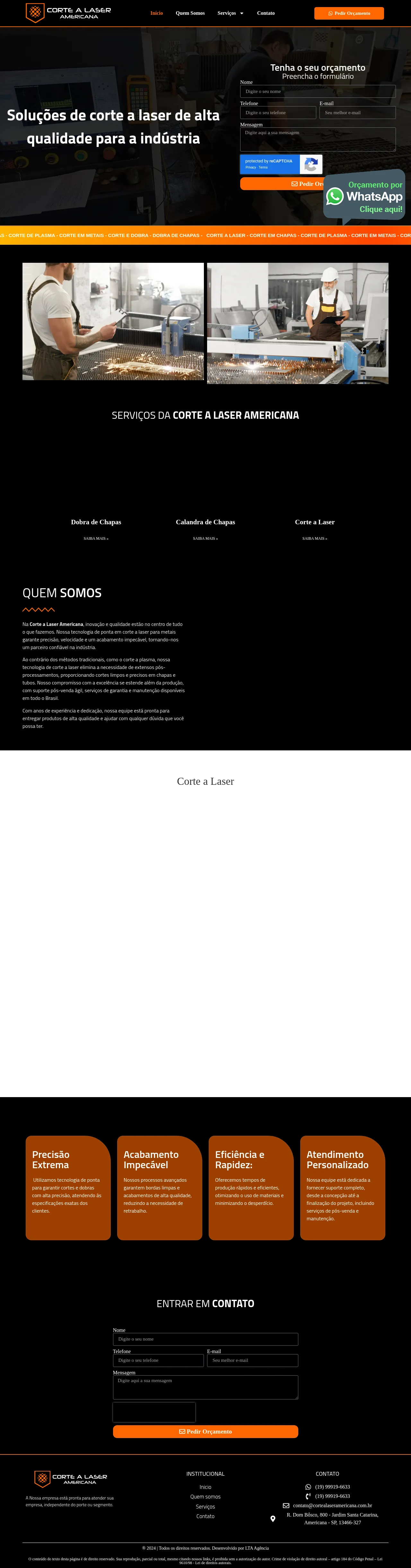 Corte a Laser Americana specializes in high-precision laser cutting services for metal components. The company provides efficient fabrication solutions including sheet metal bending and rolling, serving a diverse range of industrial sectors. Utilizing advanced technology, they deliver clean, high-quality finishes that minimize the need for secondary processing. The firm is committed to production speed and material optimization while offering comprehensive client support from initial project conception through to final delivery. They maintain a focus on technical excellence and reliable post-sales service to meet the specific requirements of various business scales.