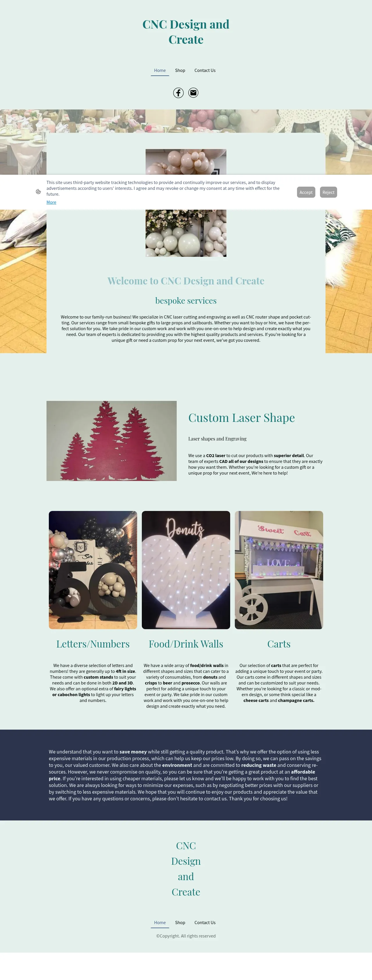 CNC Design and Create is a family-run manufacturing business specializing in custom CNC laser cutting, engraving, and router shape cutting. They provide bespoke production services for a range of applications, including custom props, event displays, and personalized gifts. The company serves various industries with specialized solutions such as event walls and custom-built carts for food and beverage service. Clients can choose between buying or hiring equipment, with options to customize materials to meet specific budget requirements. The firm emphasizes a collaborative design process to ensure each project meets precise client specifications.