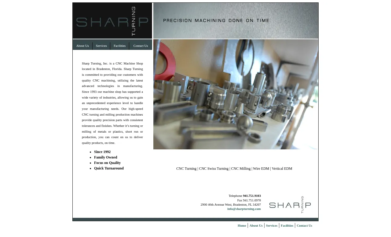 Sharp Turning, Inc. is a family-owned CNC machine shop based in Bradenton, Florida. Operating since 1993, the company specializes in precision CNC turning, milling, and EDM services for a diverse range of industrial clients. They utilize advanced manufacturing technologies to produce parts with consistent tolerances and high-quality finishes. The facility supports both short-run prototyping and large-scale production requirements for both metallic and plastic components. The company maintains a focus on efficient production timelines and rigorous quality standards for all manufactured products.