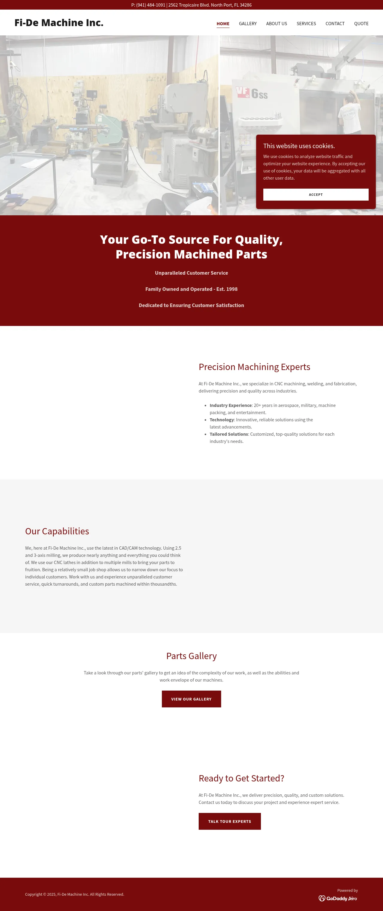 Established in 1998, Fi-De Machine Inc. is a family-owned and operated manufacturing facility specializing in precision CNC machining, welding, and fabrication. The company provides custom engineering and manufacturing solutions for a variety of sectors, including aerospace, military, machine packaging, and the entertainment industry. Known for delivering high-quality, reliable components, the firm emphasizes expert craftsmanship and quick project turnarounds. By combining advanced technology with years of industry experience, they provide tailored solutions to meet specific client requirements. The company focuses on maintaining high standards for every project, from prototyping to production runs.