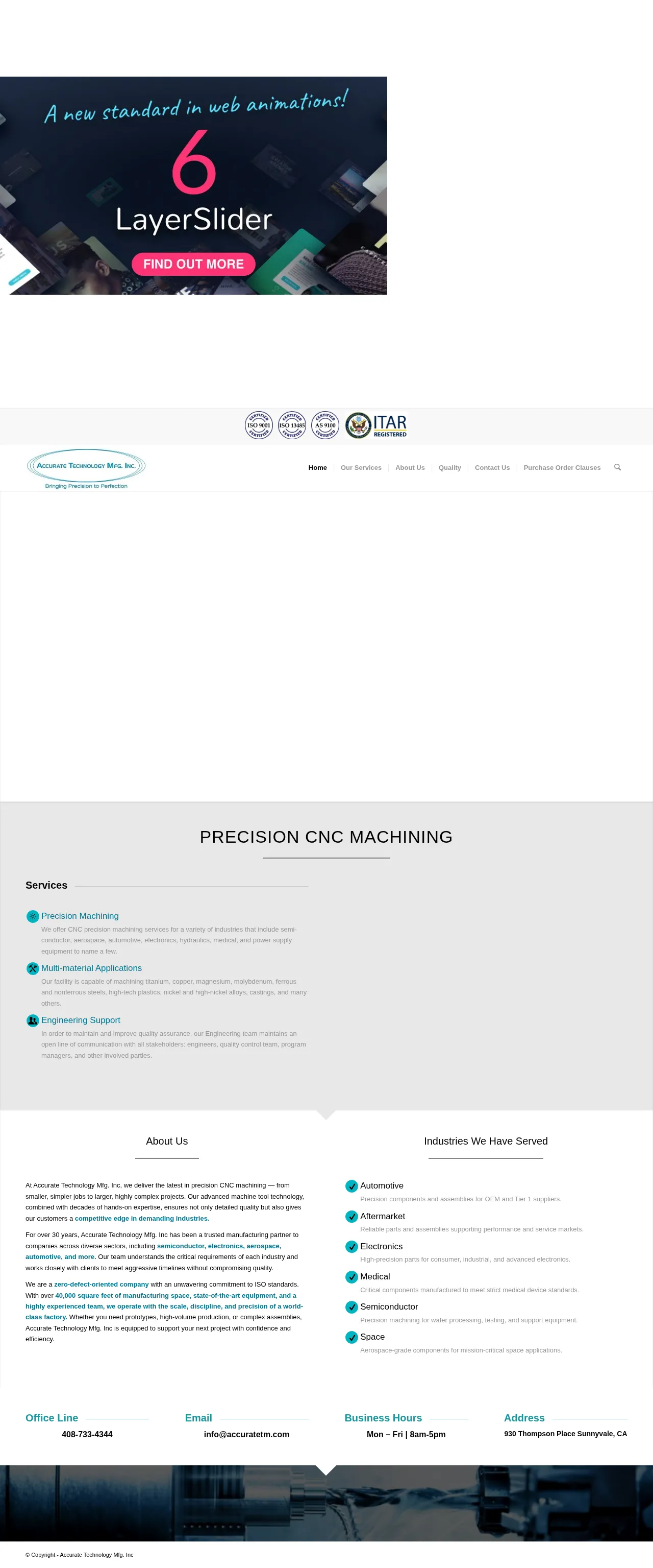 Accurate Technology Mfg. Inc provides precision CNC machining and engineering support for diverse industries including semiconductor, aerospace, medical, and electronics. The company operates a 40,000 square-foot facility equipped with over 55 CNC machines, supporting project needs from prototypes to high-volume production. Known for its zero-defect approach, the firm maintains rigorous quality standards and leverages advanced metrology for high-precision dimensional inspections. With over 30 years of experience, the company serves as a strategic manufacturing partner focused on meeting complex technical requirements and tight production timelines.