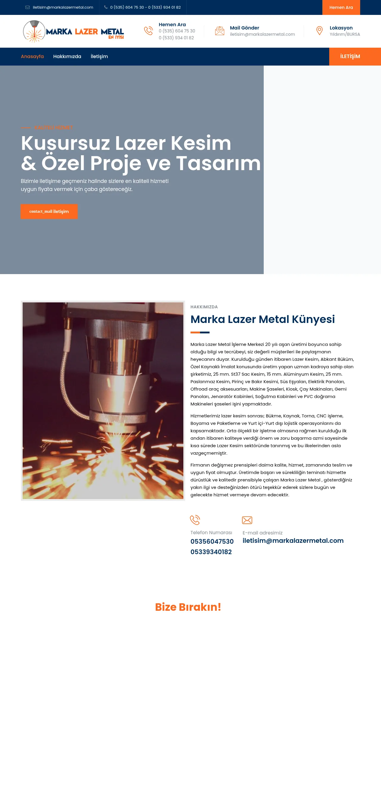 Marka Lazer Metal is an industrial manufacturing center specializing in precision laser cutting and metal fabrication. With over 20 years of experience, the company provides comprehensive solutions including bending, welding, turning, CNC machining, and finishing services. They serve a diverse range of industries, producing components such as machine chassis, generator enclosures, electrical panels, and automotive accessories. The firm is dedicated to maintaining high quality and operational consistency through its professional engineering team. Their service model emphasizes customer-oriented production, timely delivery, and competitive pricing for both domestic and international markets.