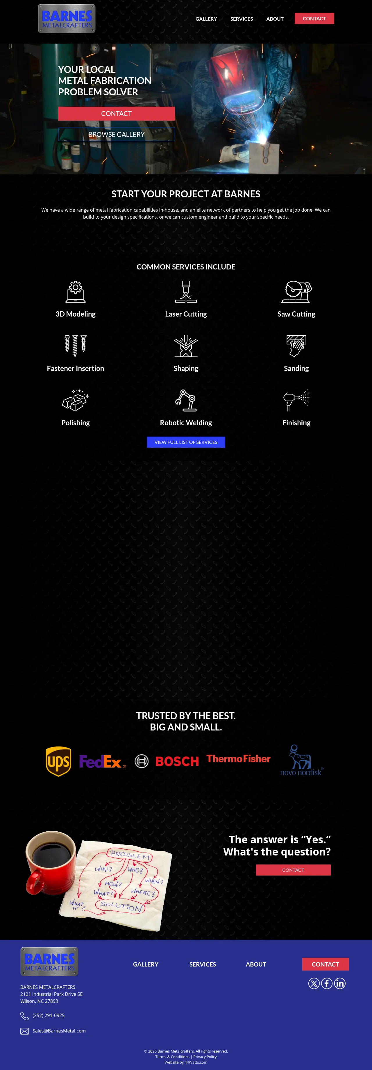 Barnes Metalcrafters is a metal fabrication service provider specializing in both custom-engineered solutions and build-to-print projects. The company maintains comprehensive in-house fabrication capabilities supplemented by an extensive partner network to support diverse industrial manufacturing requirements. They provide end-to-end services ranging from initial 3D modeling and design to final finishing processes. The facility is equipped to handle complex metalwork for both small and large-scale projects, focusing on precision and versatility. By offering flexible design and engineering assistance, the company functions as a comprehensive problem-solving partner for its clients.