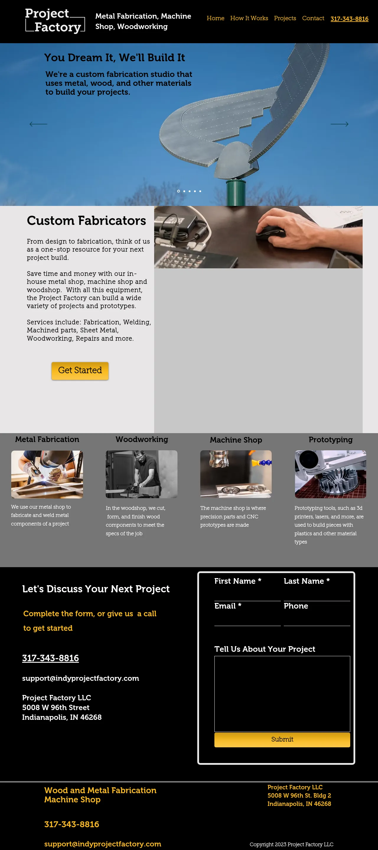 Project Factory LLC is a custom fabrication studio located in Indianapolis, Indiana, specializing in both wood and metal projects. The company provides a range of services including machining, welding, sheet metal fabrication, and prototyping for unique client designs. They cater to a diverse array of applications such as custom furniture, architectural wall pieces, sculptures, signage, and kinetic installations. By utilizing advanced prototyping tools, the facility produces both short and medium-run components to meet specific project needs. The studio serves as a comprehensive solution for clients looking to bring custom physical projects from concept to final construction.