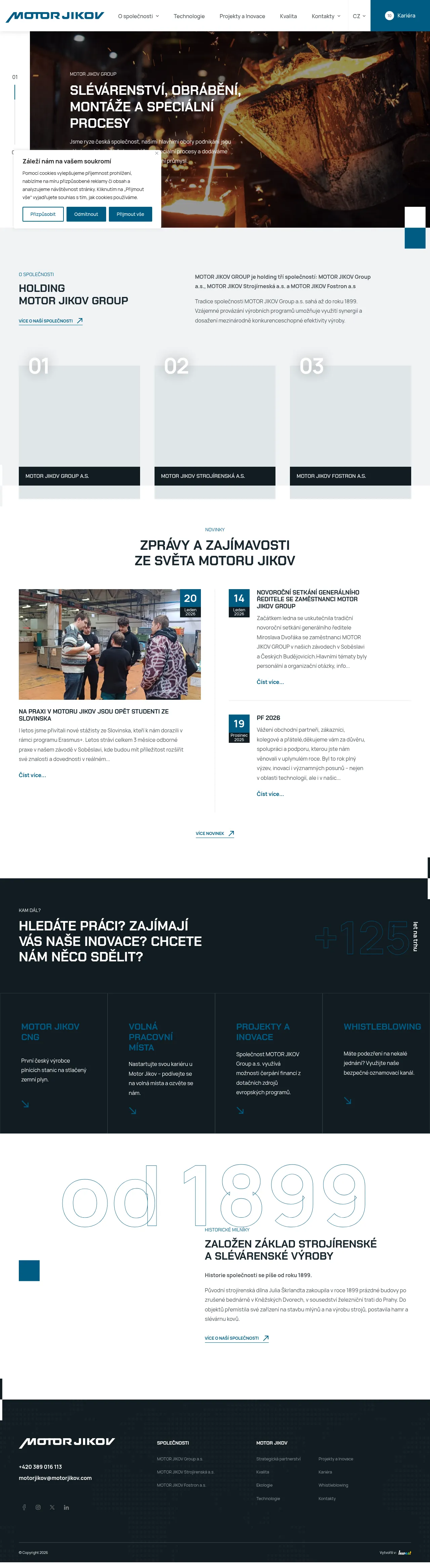 MOTOR JIKOV Group is a Czech industrial holding company with a history dating back to 1899. The group specializes in foundry operations, precision machining, complex assembly, and the development of specialized industrial processes. They primarily serve the automotive and consumer goods sectors through their integrated engineering and manufacturing divisions. By leveraging synergies across their internal companies, they maintain competitive production efficiency for both domestic and international markets. Additionally, the company is recognized for its innovation in CNG engine technologies and advanced automated control systems.