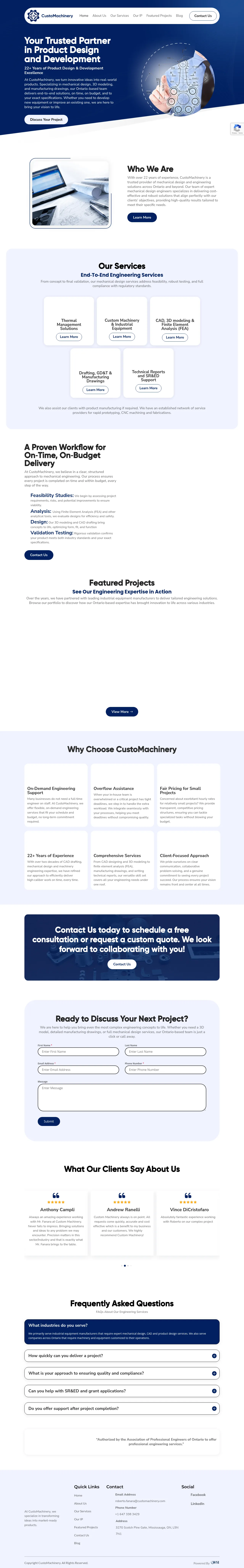 3270 Scotch Pine Gate, Mississauga, ON L5N 7N1, Canada, Oakville, Ontario, Canada(647) 338-3429roberto.fanara@customachinery.comhttp://customachinery.com/