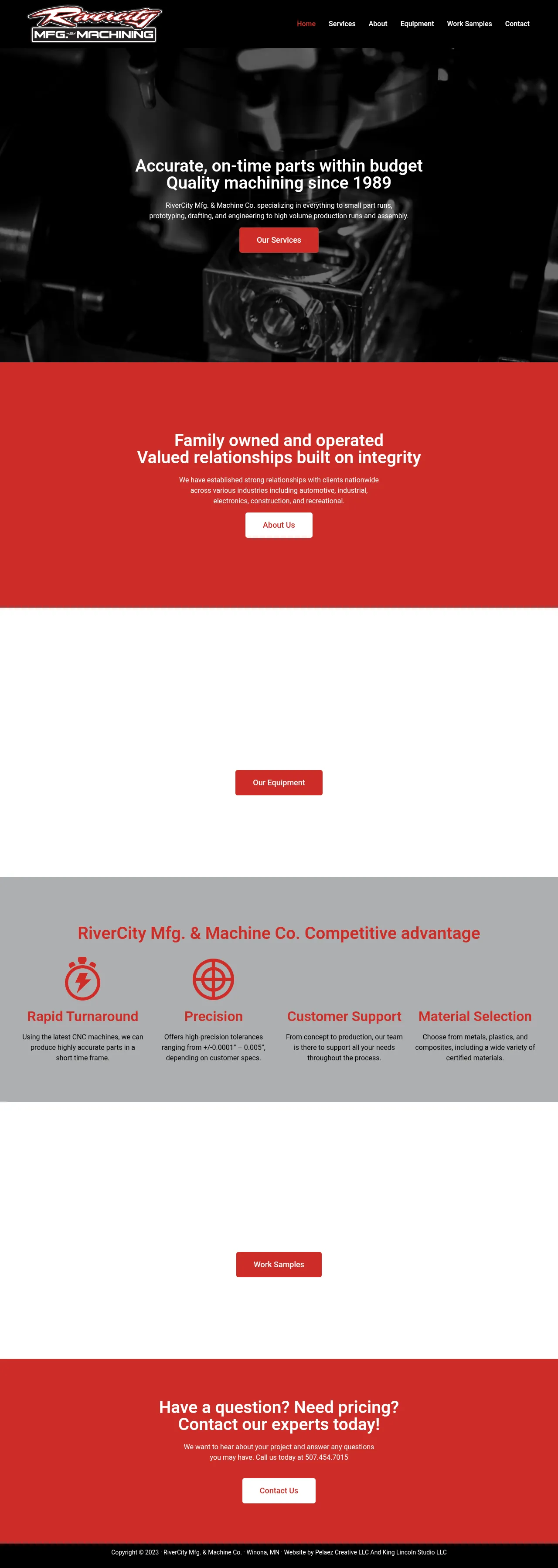 River City Manufacturing is a precision machining company established in 1989 that provides custom manufacturing solutions for a diverse range of industries. The company utilizes advanced CNC technology to produce accurate parts with tolerances as tight as +/- 0.0001". Their service offerings include multi-axis machining, waterjet cutting, EDM, and comprehensive fabrication support from initial concept to final production. With a commitment to quality and efficient turnaround times, the firm handles both simple and complex components using a variety of metals, plastics, and composites. They support their manufacturing operations with robust quality inspection processes and integrated CAD/CAM software suites.