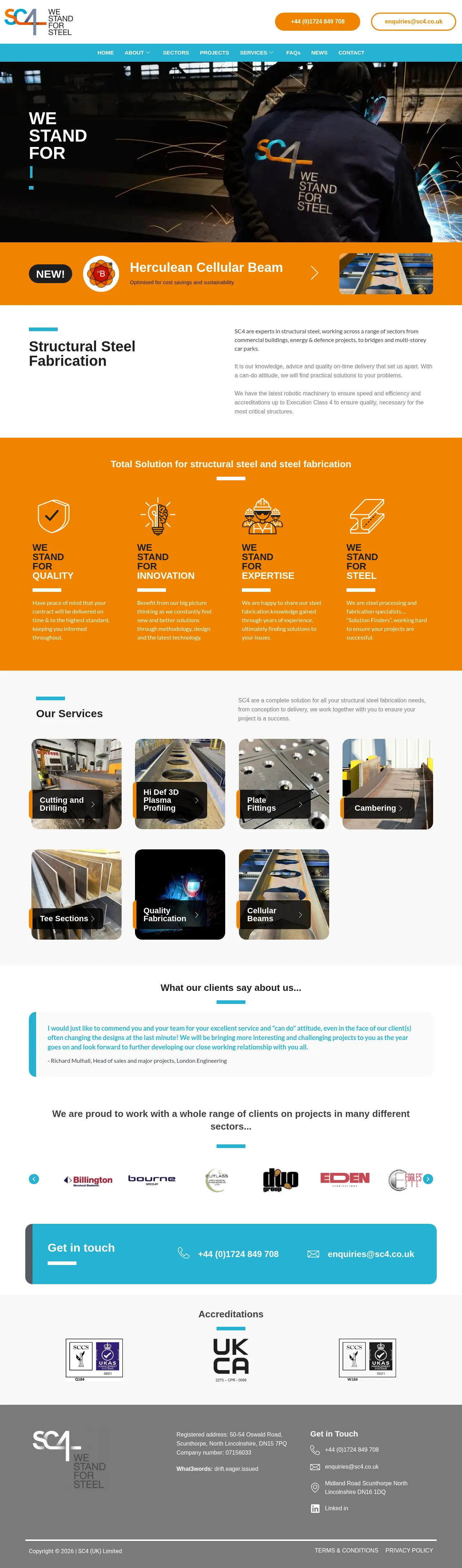 SC4 is a specialized structural steel fabrication company providing comprehensive metal processing services from conception to final delivery. The firm serves a diverse range of industrial sectors by leveraging advanced robotic machinery and high-precision methodology to ensure project efficiency. With a focus on structural integrity and quality, the company maintains certifications up to Execution Class 4 for critical infrastructure projects. Their team offers technical design advice and problem-solving solutions to address complex structural requirements. Through the use of modern technology and innovative design practices, SC4 delivers cost-effective and sustainable steel components.