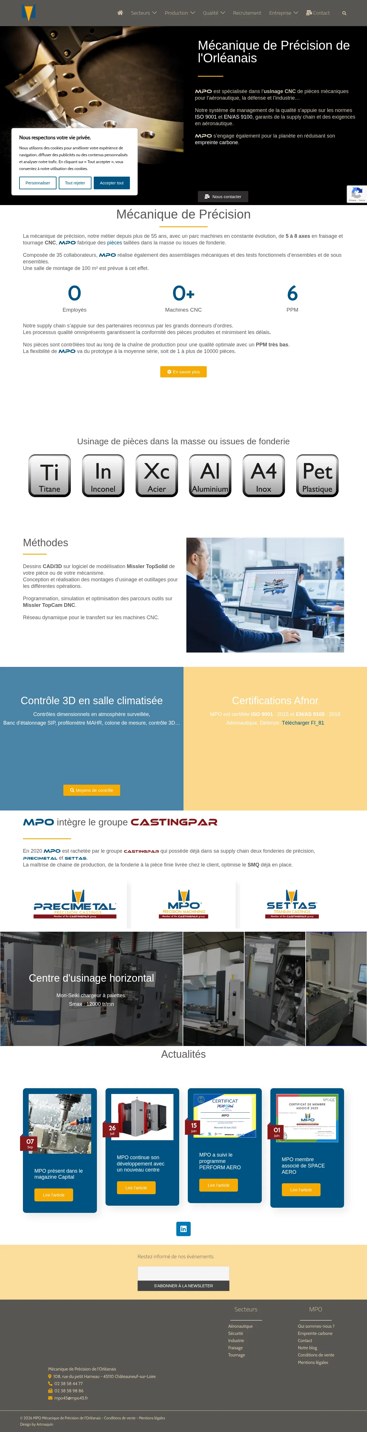 MPO Mécanique de Précision de l'Orléanais is a specialized manufacturing firm focusing on high-precision mechanical components for the aerospace, defense, and industrial sectors. Operating for over 55 years, the company manages production from raw material to finished assembly, including functional testing. Their capabilities range from prototypes to medium-volume production runs of up to 10,000 units. A member of the Castingpar group, MPO integrates advanced CNC machining, turning, and assembly services within a strictly controlled quality management system. The company maintains an environmentally conscious approach while ensuring full compliance with complex technical specifications in climate-controlled production environments.