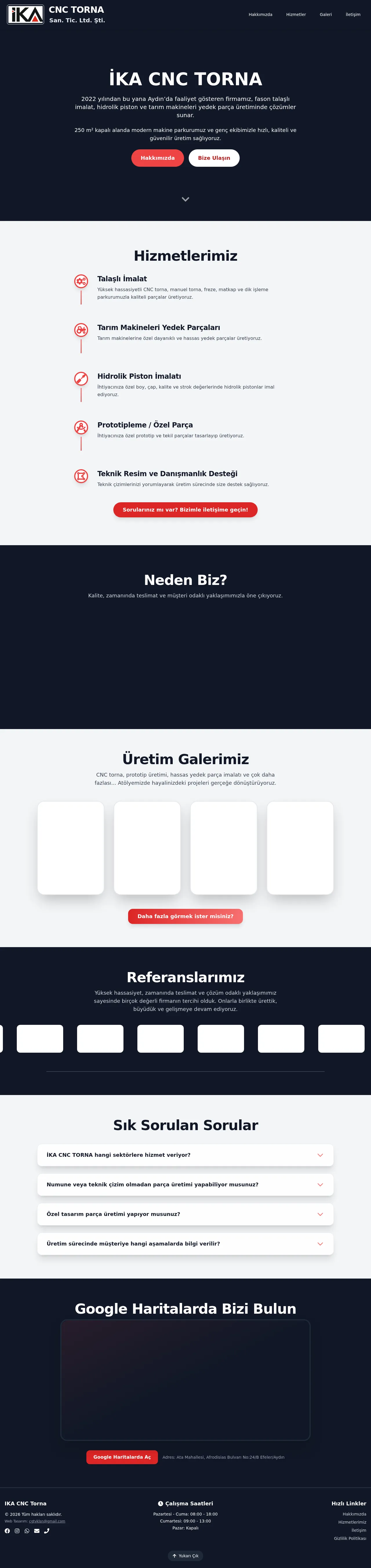 IKA CNC Torna is an Aydın-based manufacturing company specializing in high-precision CNC turning and machining services. The company provides durable, high-quality spare parts and components for the agricultural, automotive, and industrial machinery sectors. Their core capabilities include CNC and manual turning, milling, drilling, and custom hydraulic piston manufacturing. The facility serves as a partner for both prototyping and series production, emphasizing strict adherence to technical specifications and tight tolerances. IKA CNC Torna differentiates itself through its modern, well-maintained machine park and a commitment to transparent communication throughout the production lifecycle.