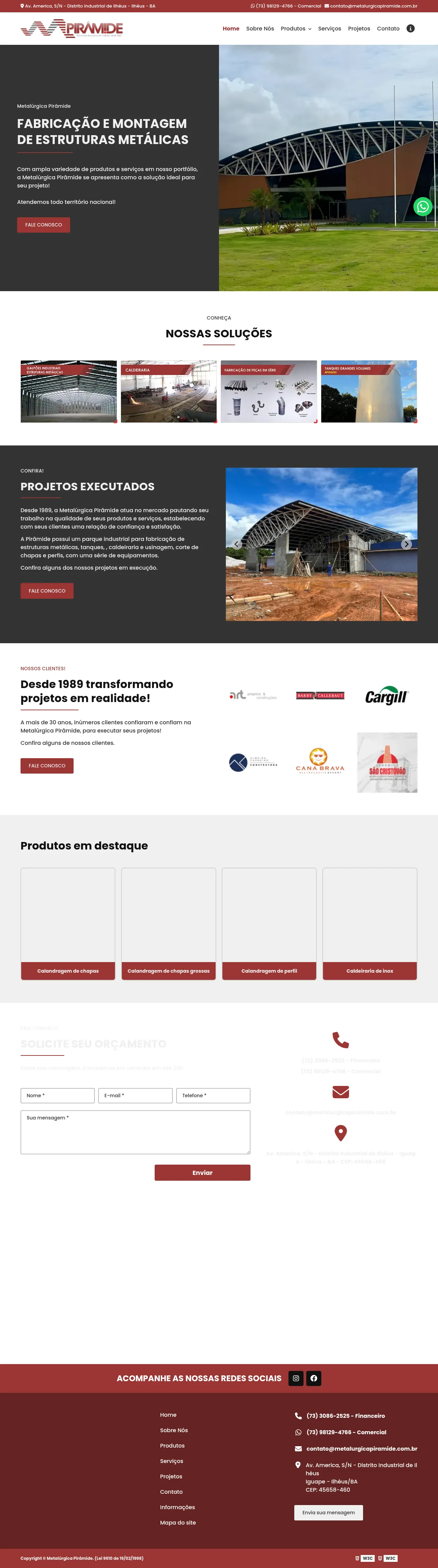 R. A, 1038 - Distrito Industrial, Ilhéus - BA, 45658-460, Brazil, Ilhéus, Bahia, Federative Republic of Brazil(73) 98129-4766http://www.metalurgicapiramide.com.br/