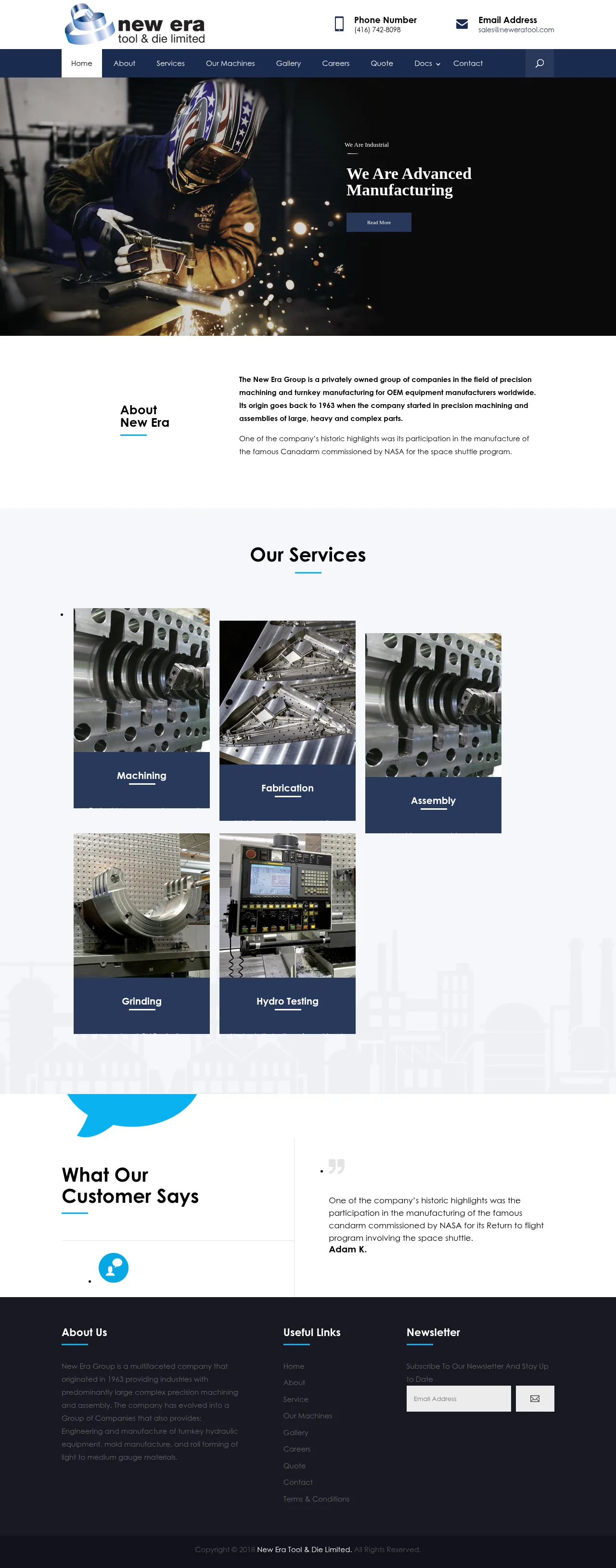New Era Tools Ltd is a multifaceted manufacturing organization with roots dating back to 1963. The company specializes in large-scale complex precision machining and assembly for a variety of industrial sectors. Beyond core machining, the group offers engineering and manufacturing services for turnkey hydraulic equipment and industrial molds. They also maintain expertise in the roll forming of light to medium gauge materials. The company leverages its extensive history and broad technical capabilities to provide comprehensive manufacturing solutions.