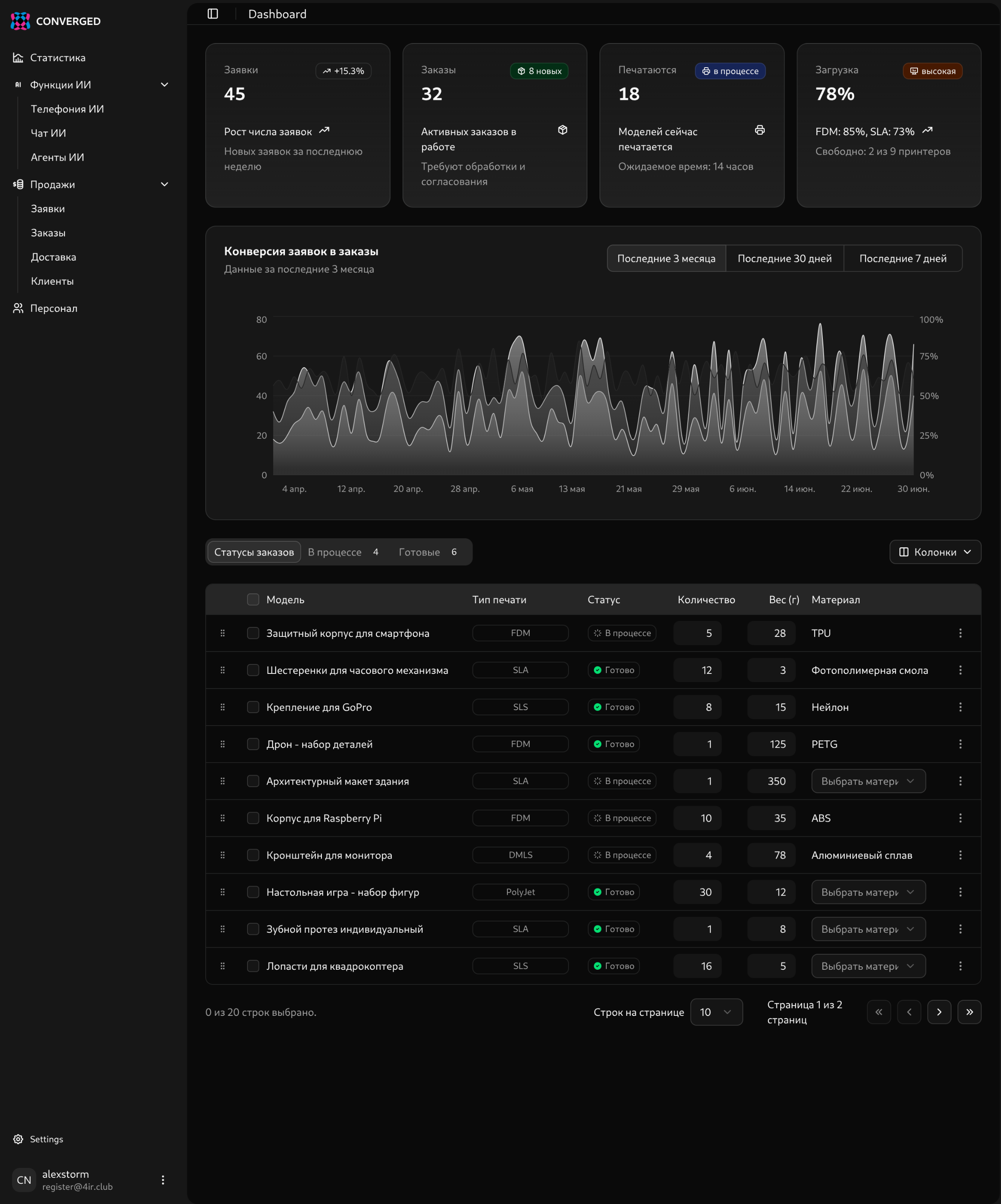 Интеграция всего оборудование в одну цифровую фабрику. Автоматизация рутин, удобная аналитика, оптимизация склада и материалов.