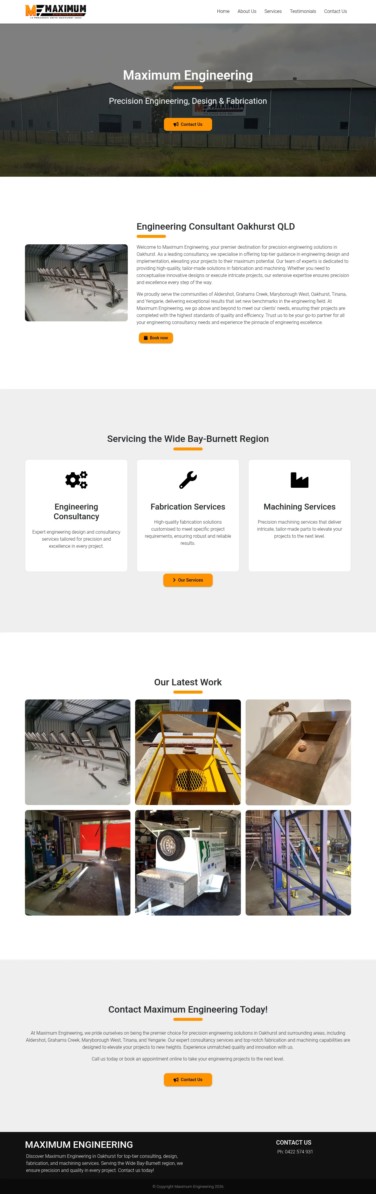 Maximum Engineering provides professional engineering consultancy, fabrication, and precision machining services to clients across Oakhurst, Tinana, and surrounding regions. The firm offers comprehensive support ranging from feasibility studies and structural design to custom metalwork and large-scale component manufacturing. Their team utilizes advanced technology to deliver engineered solutions for diverse industries, with specialized capabilities in driveshaft modification and repair. Committed to high industry standards, Maximum Engineering focuses on delivering cost-effective, precise results for both prototyping and production projects.