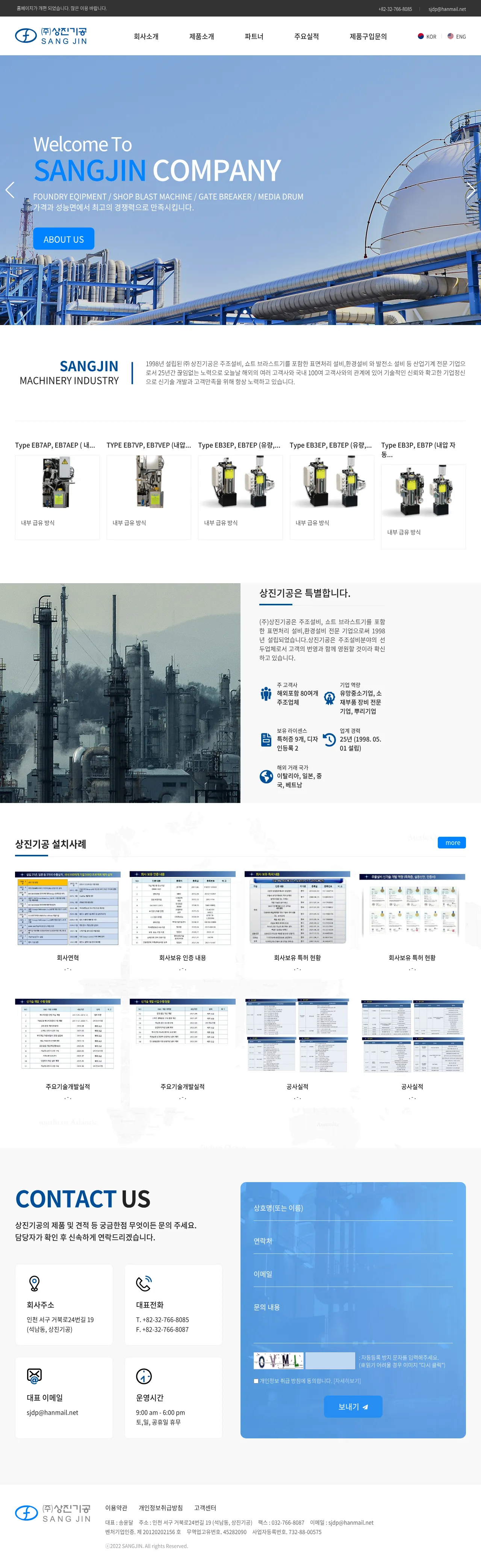 Established in 1998, Sangjin Machinery Industry is a South Korean manufacturer specializing in industrial machinery and equipment. The company provides comprehensive solutions for foundry processes, surface treatment, and environmental systems, including shot blasting machinery. With over 25 years of technical expertise, the firm serves a diverse client base across South Korea, Japan, China, Vietnam, and Italy. Sangjin Machinery is recognized for its commitment to technological innovation, patent development, and high-performance equipment design for industrial applications.