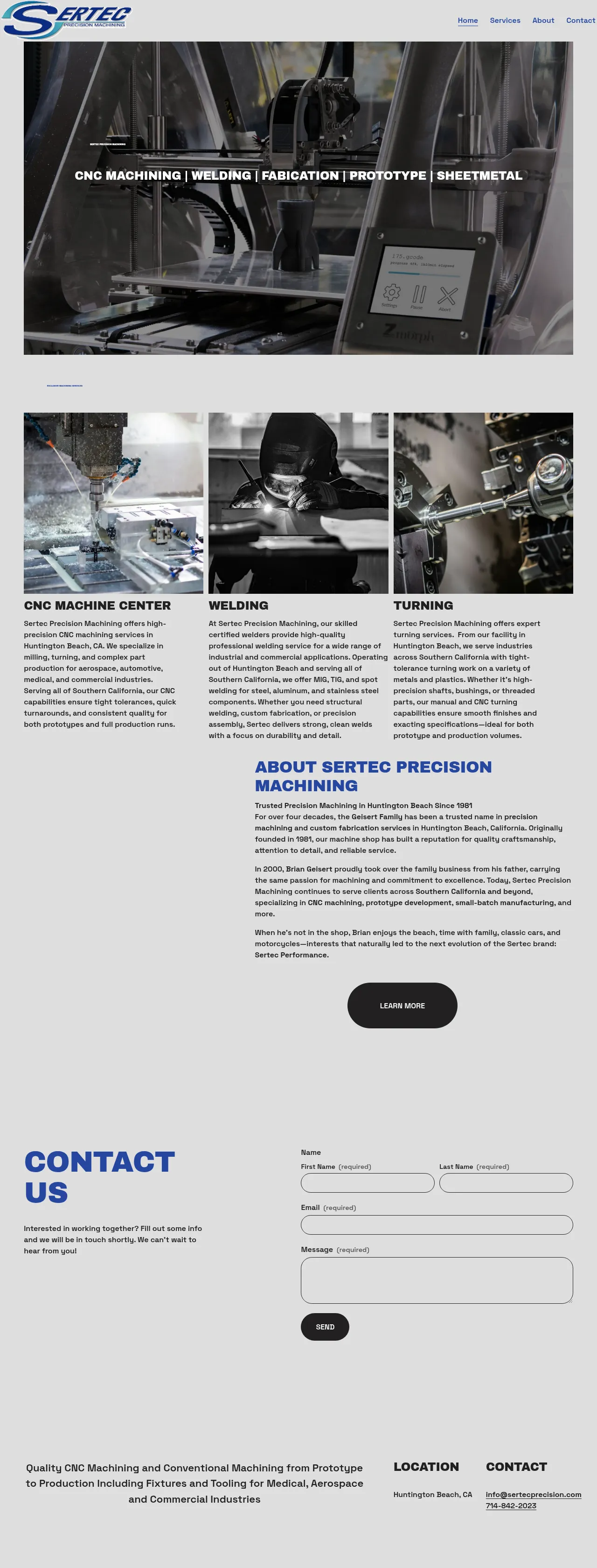 Sertec Precision Machining is a Huntington Beach-based machine shop providing high-precision manufacturing solutions to the aerospace, automotive, medical, and commercial industries. Established in 1981, the company specializes in CNC machining, custom fabrication, and professional welding services. Their technical capabilities include multi-axis milling, turning, and precision sheet metal fabrication for both prototype and full-scale production runs. Operating with over four decades of industry experience, the facility focuses on maintaining tight tolerances and delivering consistent quality for all components. They serve clients throughout Southern California and beyond with a commitment to reliable turnaround times.