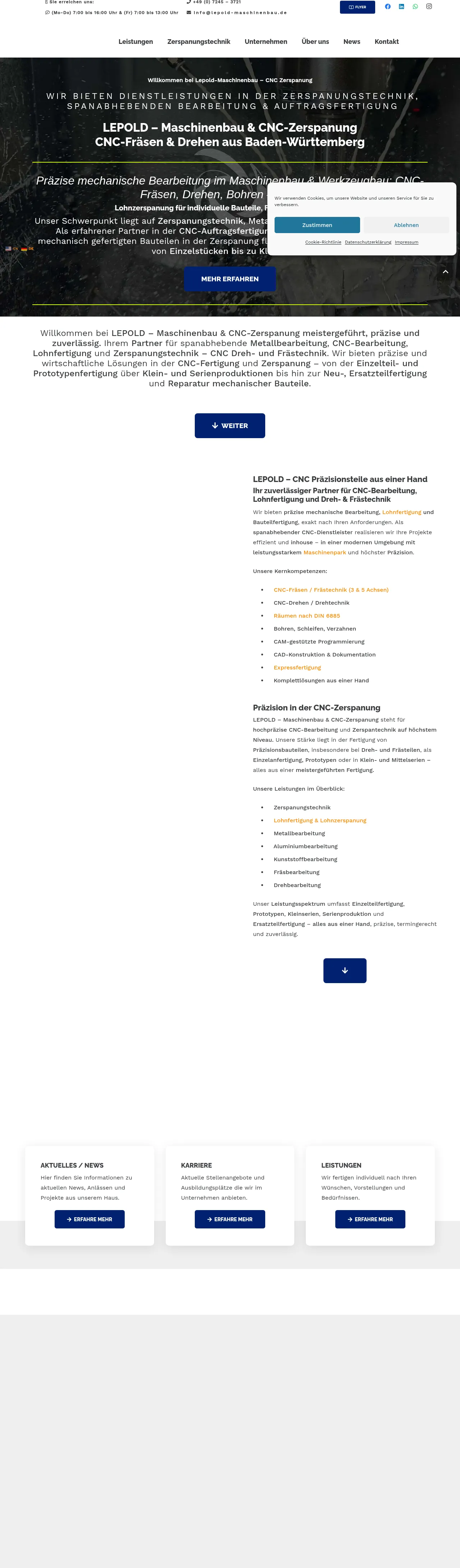 Lepold-Maschinenbau is a precision CNC machining company based in Au am Rhein, Germany. The firm produces custom components, single-item parts and serial production runs, and delivers complex assemblies built to customer specifications. Services include CNC milling, broaching and contract manufacturing for prototypes and series production.