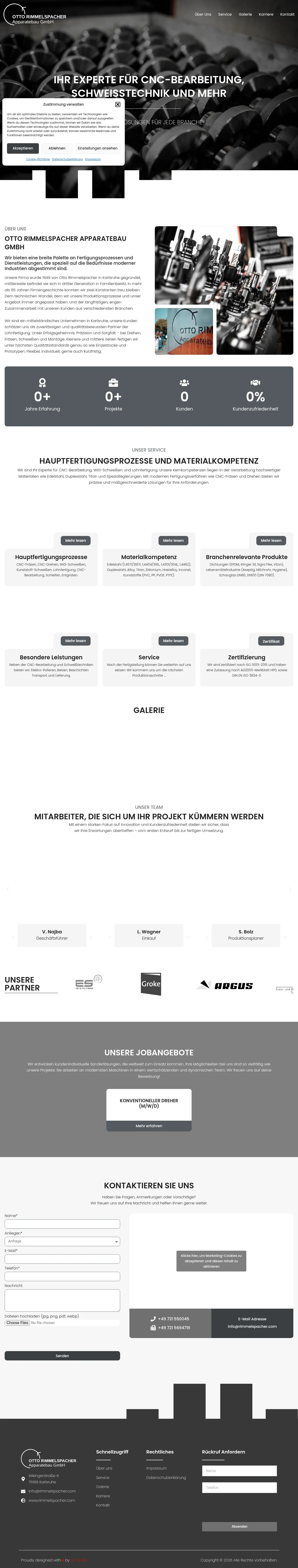 Otto Rimmelspacher Apparatebau GmbH is a family-owned contract manufacturer based in Karlsruhe, specializing in CNC machining, welding and complete assembly of complex parts and assemblies. The company handles end-to-end production including material procurement, CNC milling and turning, surface treatments and final testing. Founded in 1949 and now in its third generation, it serves industries requiring high precision and strict quality documentation.